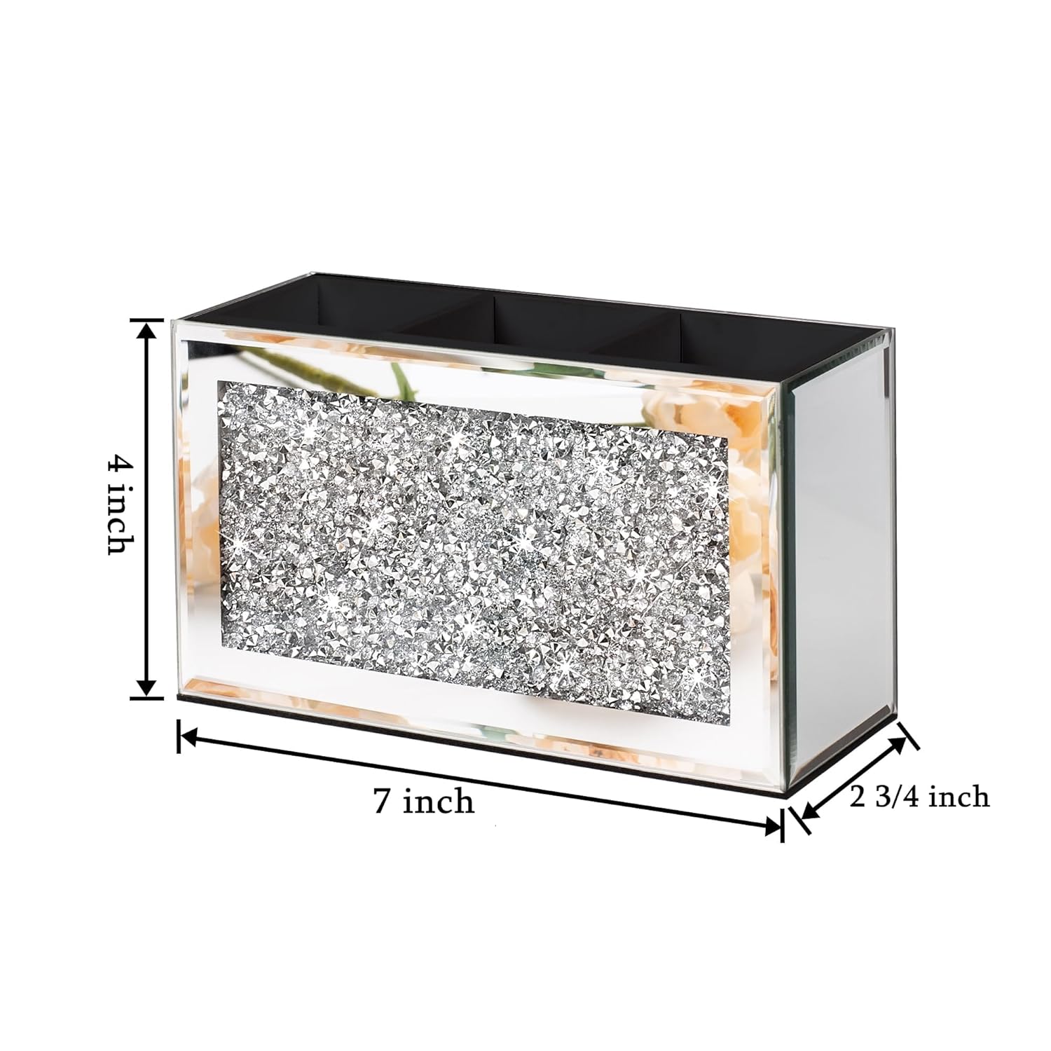 - 💎【Mirrored make-up brushes organizer】This Silver Mirror Glass Brush Holder features crushed diamond at the center, which is eye-catching and adds charm and style to your bedside table or dressing table.