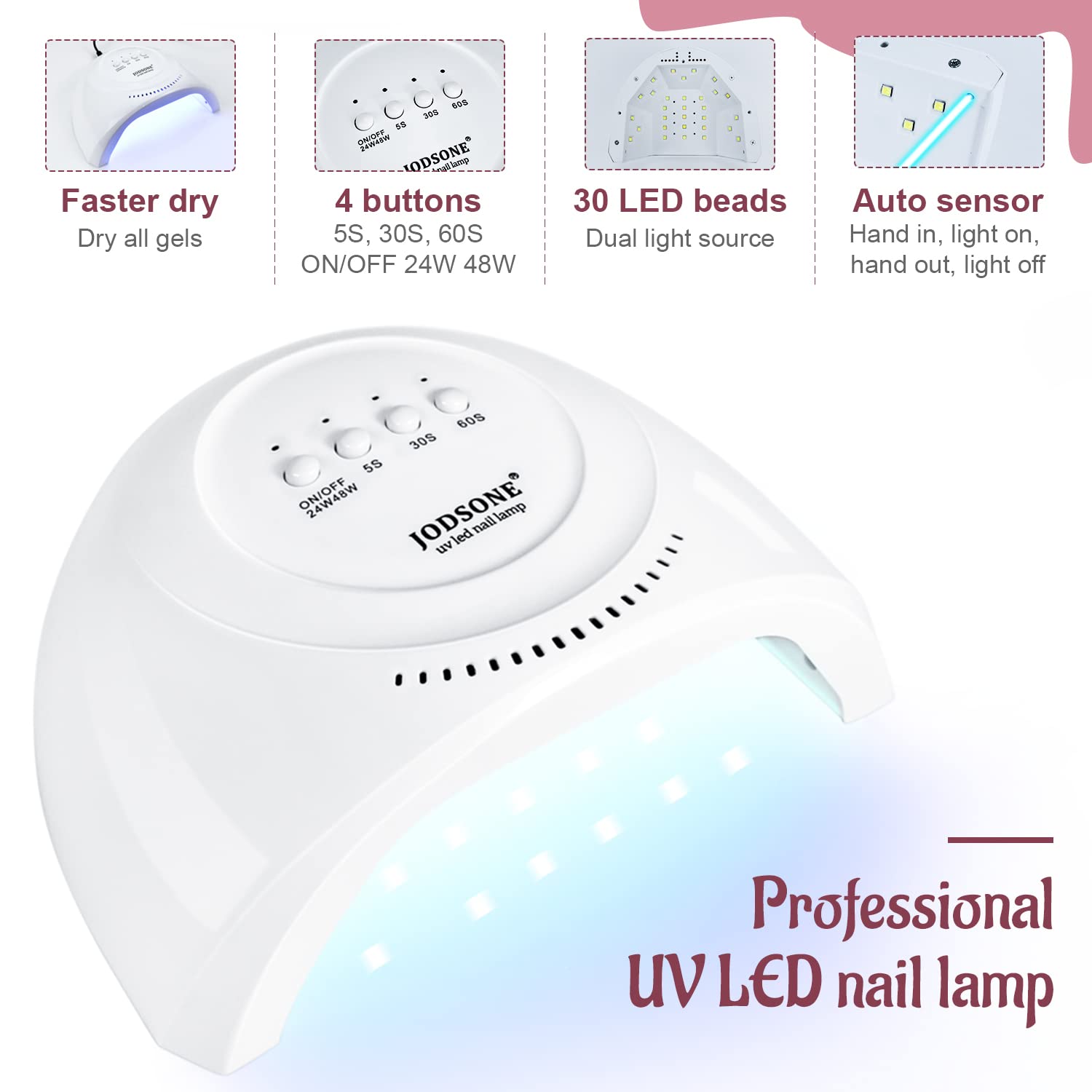 JODSONE Gel Nail Polish Kit 60 PCS with U V Light Soak off Base Top Coat 55 Shine Colors Gel Nail Kit Bright and Dark Brown Wine Red Series Manicure Set for Women and Girls