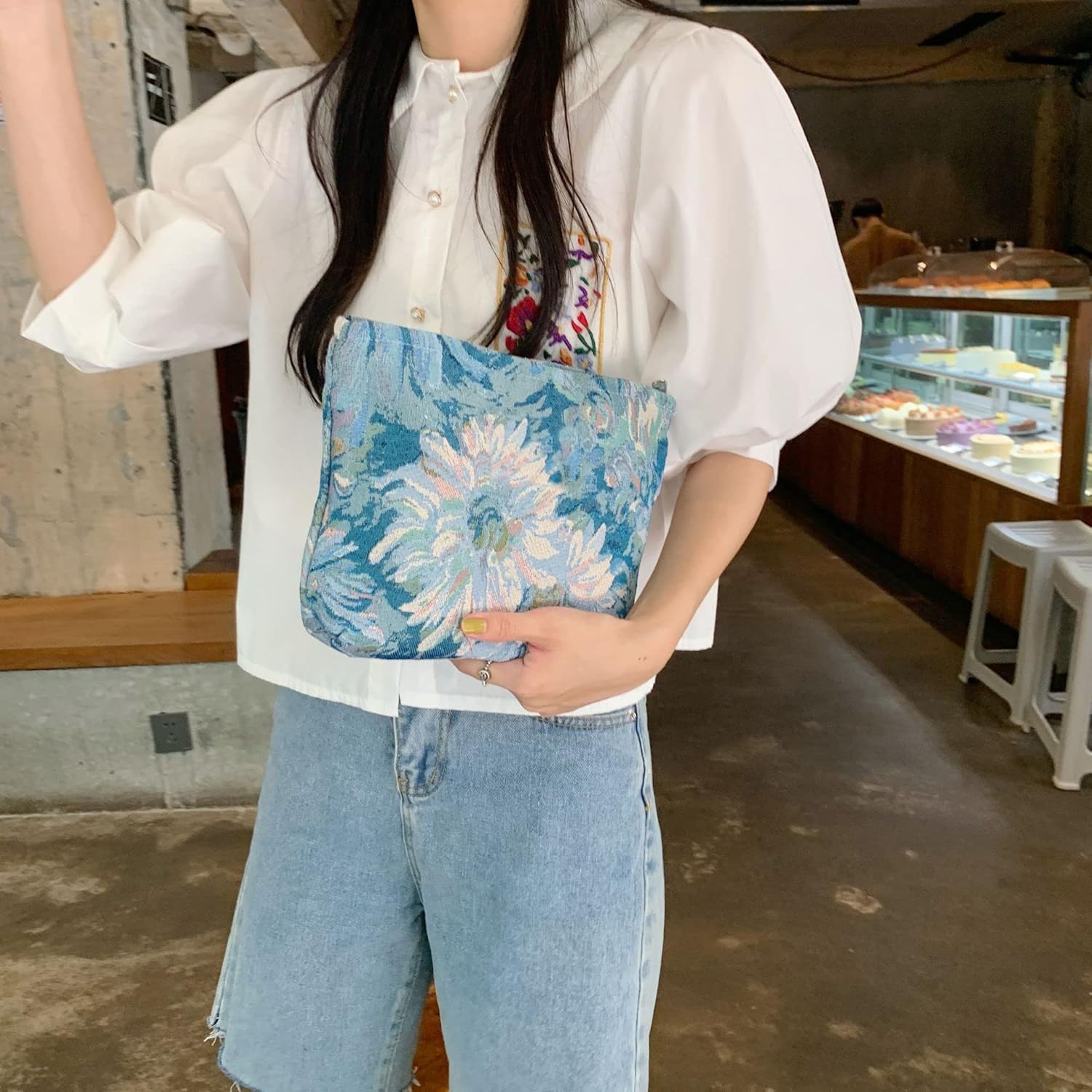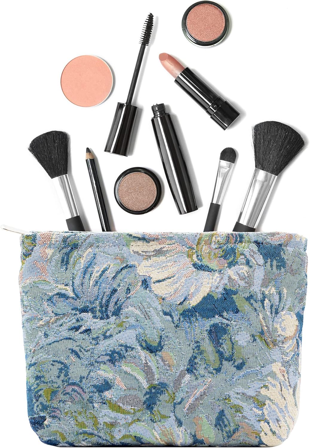 Makeup Bags for Purse Zipper Cosmetic Pouch Large Travel Canvas Make Up Organizer Tool Pouch for Women and Girls,Flower Blue