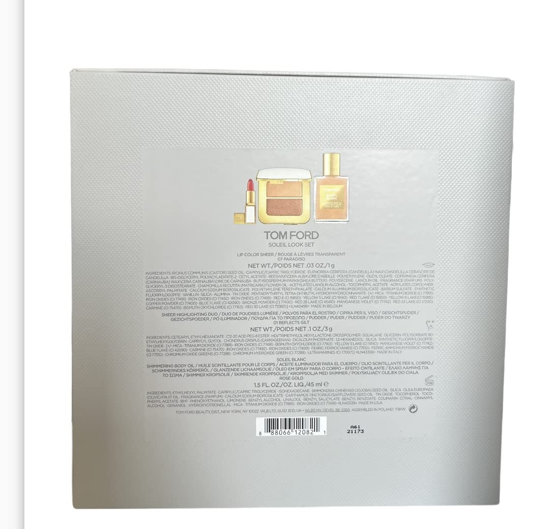 Tom Ford Soleil Look Set 3pc Soleil Shimmering Body Oil Rose Gold Highlighting Duo Reflects Gilt Paradiso Lip Color Sheer
