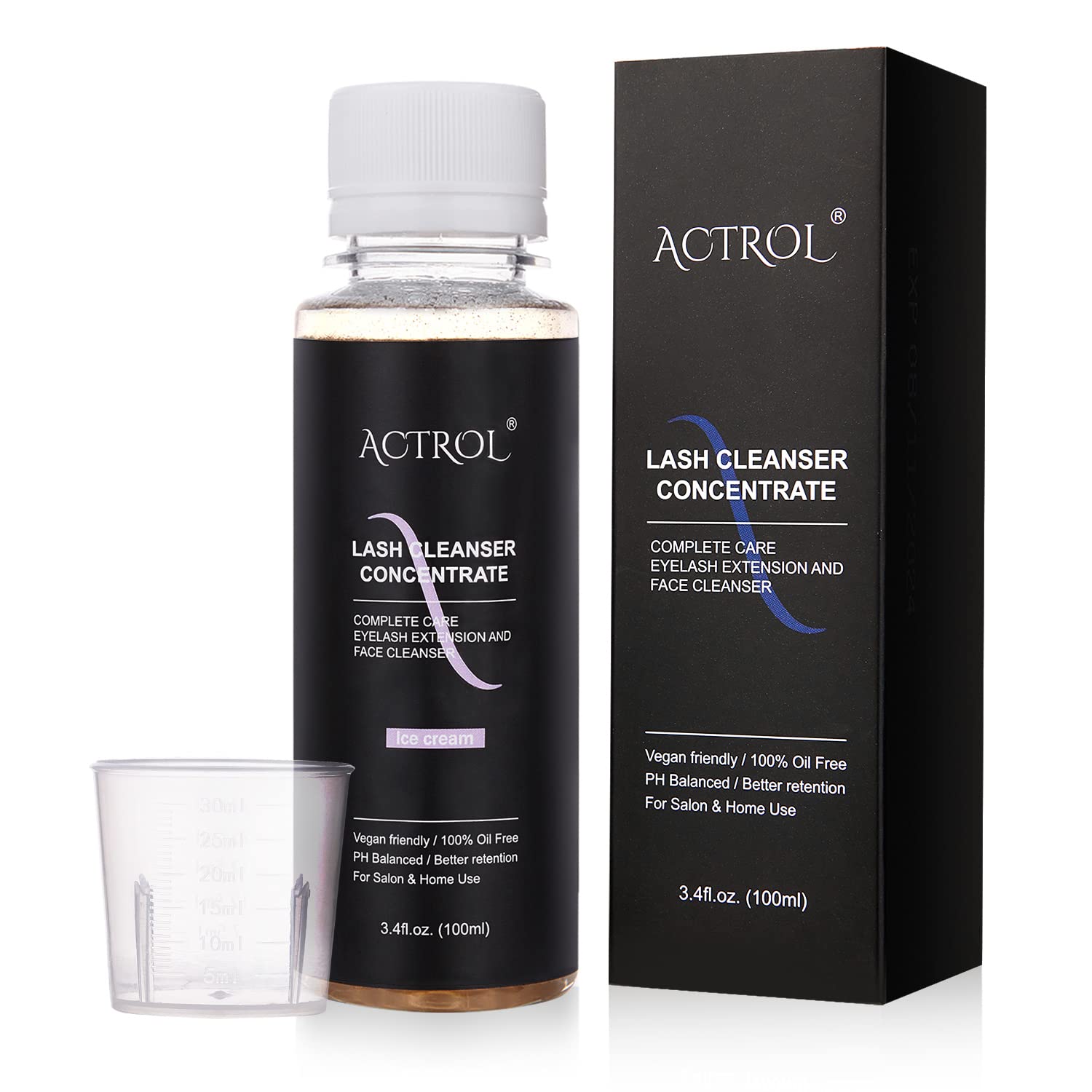 Eyelash Cleanser Concentrate 100ml Ice Cream Professional Lash Shampoo Foaming Cleanser DIY Paraben & Sulfate Free Non-lrritating Wash for Extensions Lashes with Salon Care-Makes 20 Bottles