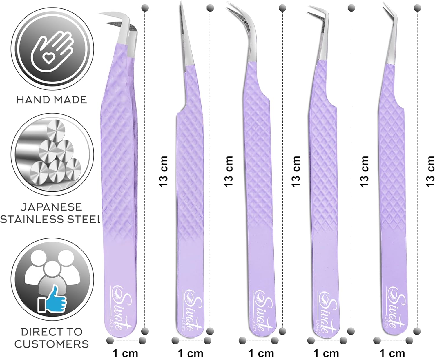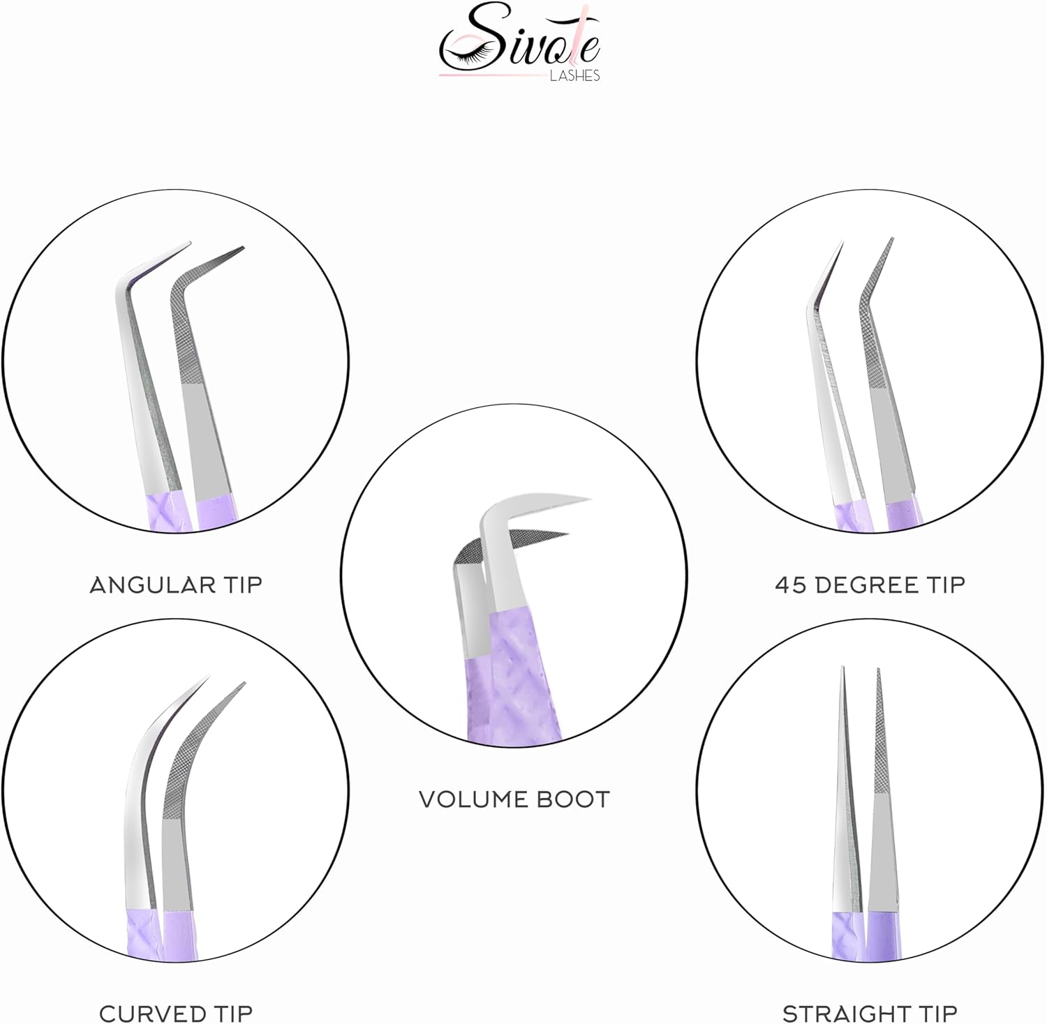 SIVOTE Lash Tweezers for Eyelash Extensions, Pack of 5 Purple – Lash Extension Tweezers Set with Diamond Grip, Precision Fiber Tip for Volume Eyelash Extensions
