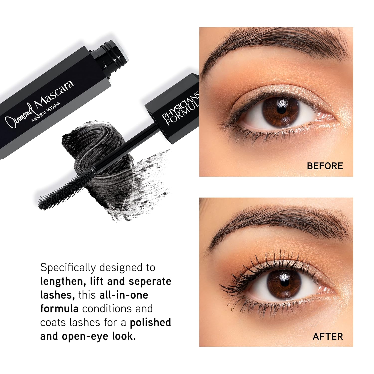 - Diamond Mascara: Your lashes shine like literal diamonds with this lash boosting Diamond Mascara. This one step black mascara lengthens, lifts, and separates lashes. Blended with Lustrous Diamond Dust, strengthening Peptides, Mineral Water, and Vitamin E.