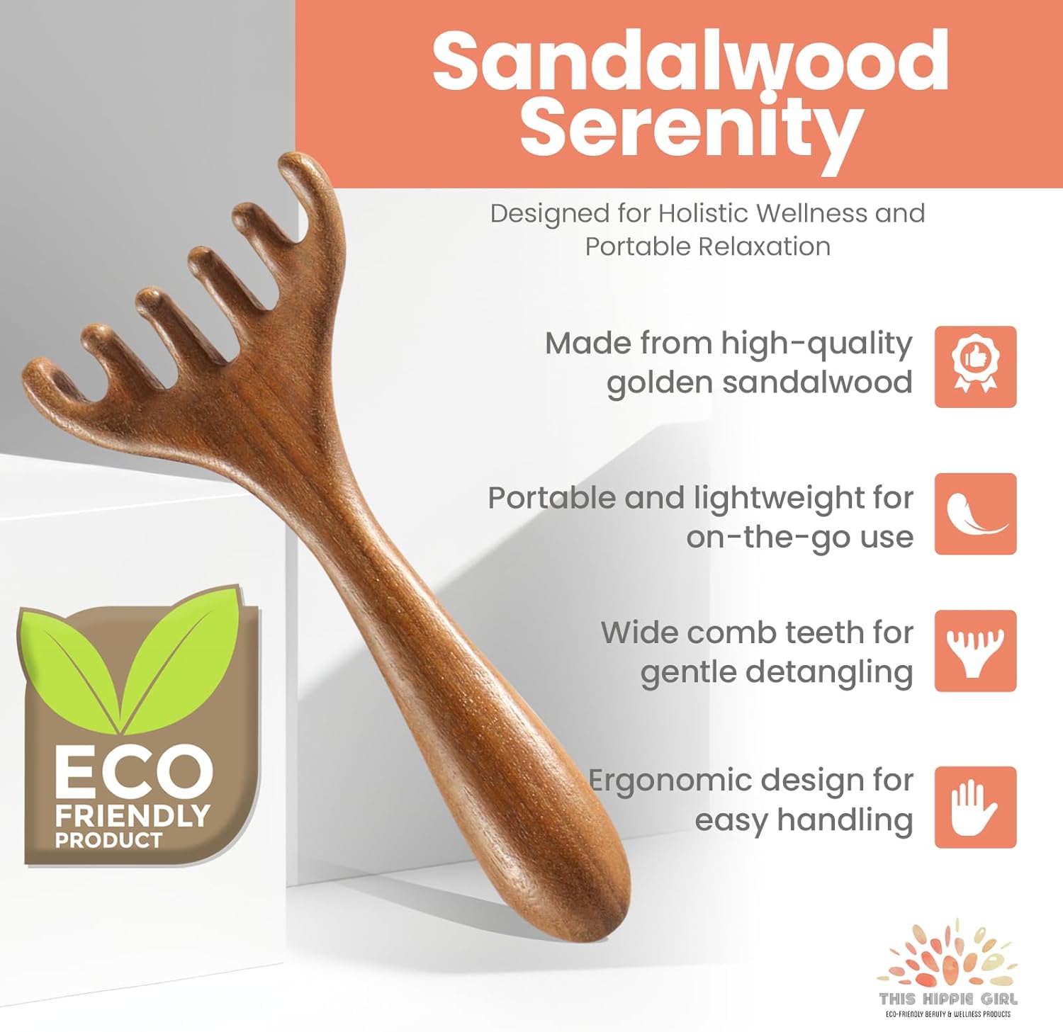 This Hippie Girl Ayurvedic Meridian Massage Comb, Wood Massage Comb for Head, Scalp and Neck Gua Sha, Sandalwood Comb for Scalp Massage, Essential Oil Massager for Women's Hair and face
