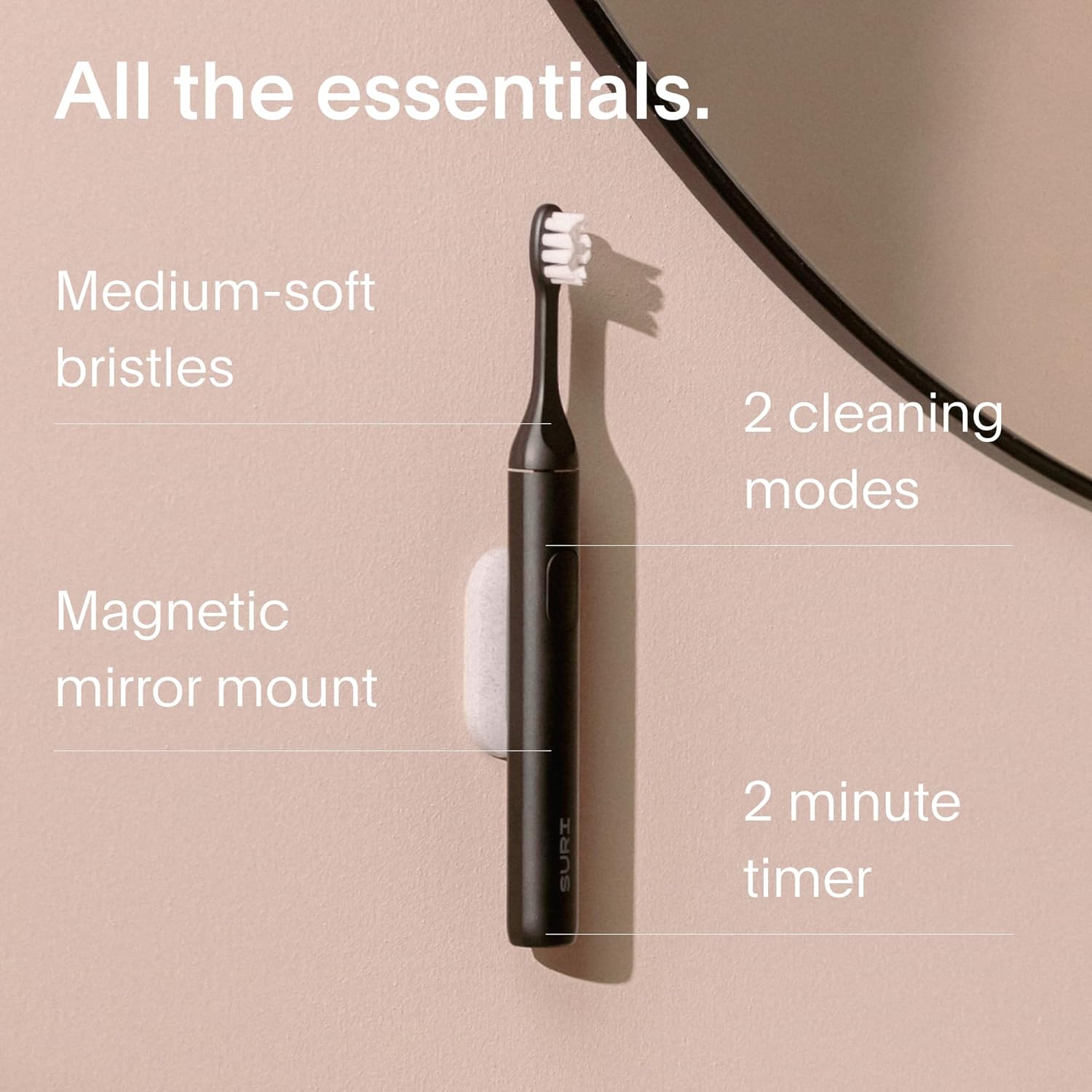 - RECYCLABLE PLANT-BASED HEADS and BRISTLES - SURI's eco-conscious electric toothbrush uses brush heads made of renewable cornstarch, and medium-soft bristles made from castor oil. SURI also offers a simple and FREE recycling service in the US