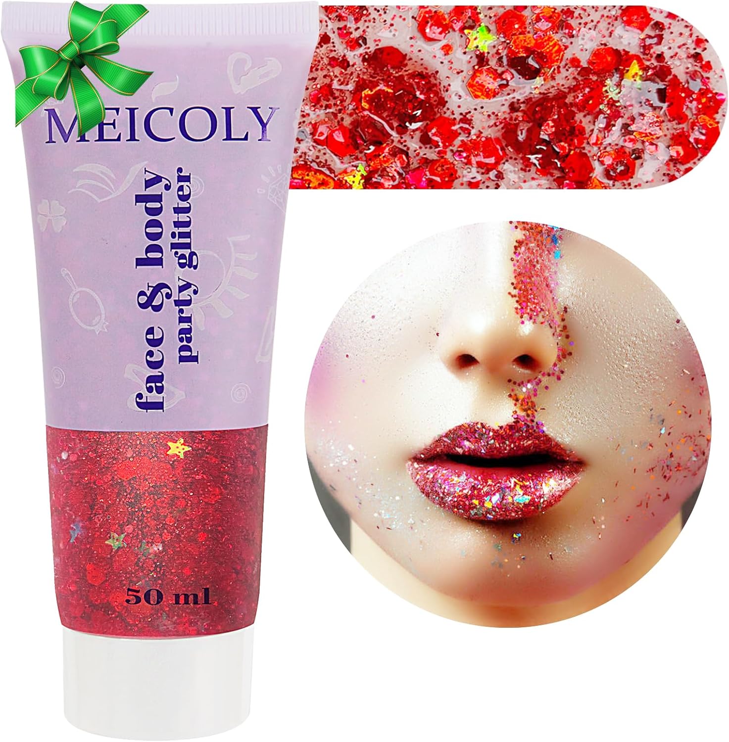 MEICOLY Red Face Body Glitter,Christmas Face Glitter Gel,Stocking Stuffers for Christmas,Sparkling Glitter Face Paint,Festival Rave Accessories Glitter Makeup,Mermaid Body Glitter Gel for Women Kids
