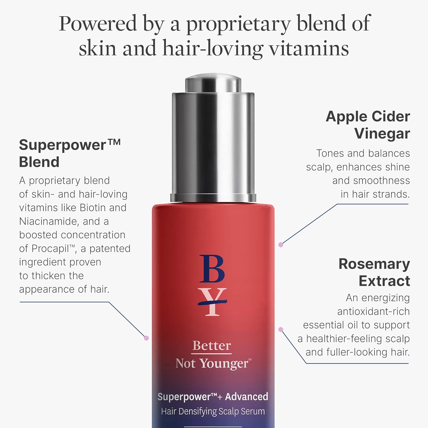 Better Not Younger Superpower+ Advanced Densifying Serum - Hair Fortifier with Biotin, Niacinamide, Rosemary & Apple Cider Vinegar for Stronger, Fuller Hair