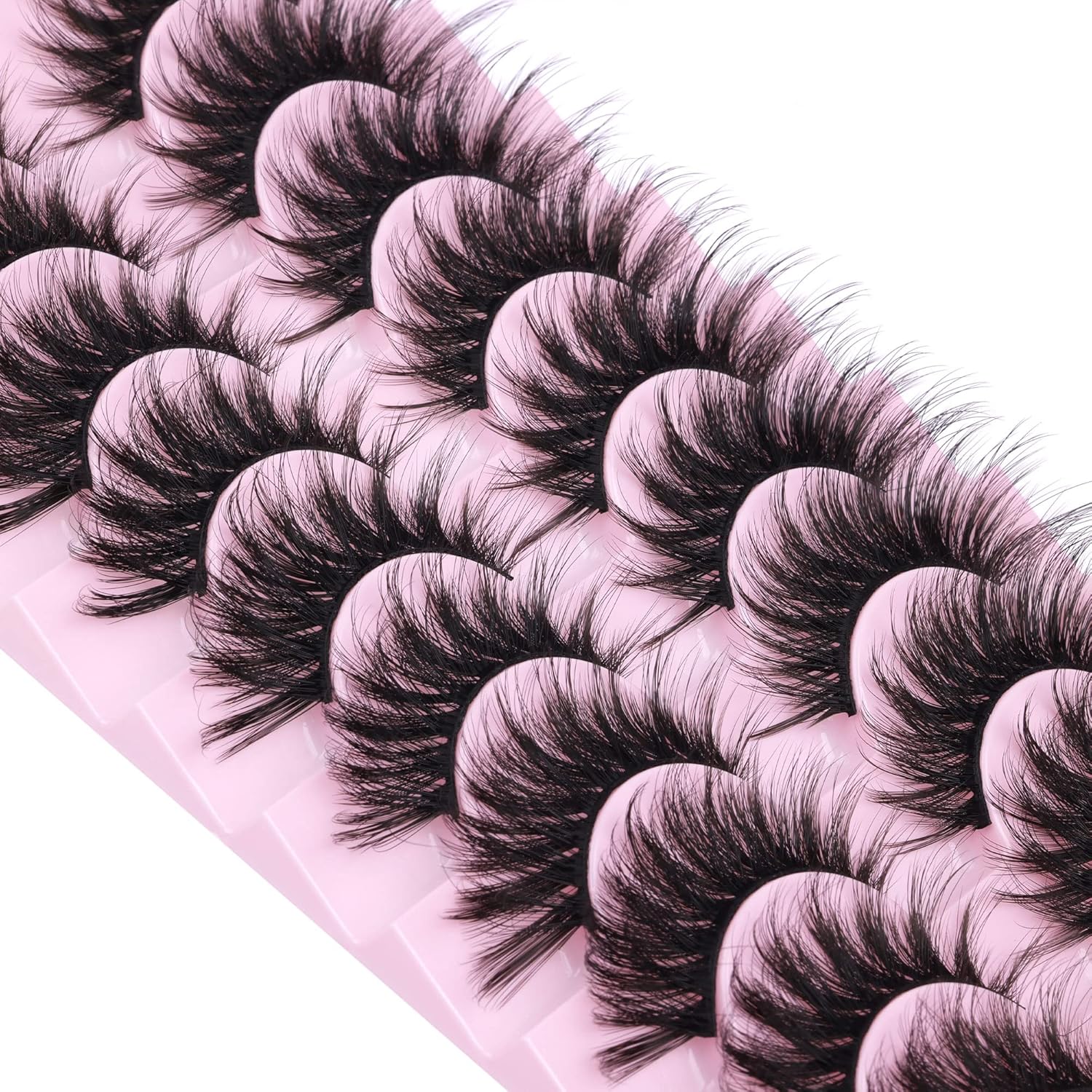 FANXITON False Eyelashes Fluffy Mink Lashes 20 mm Cat Eye Lashes Long 5D Wispy Dramatic 10 Pairs Pack
