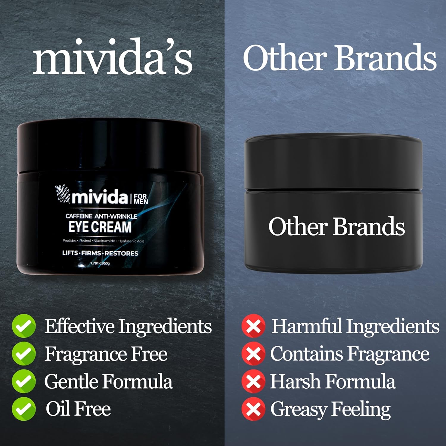 - 🌿 Safe and Effective: Our mivida caffeine eye cream is non-comedogenic and free from alcohol, fragrance, GMOs, sulfates, gluten, and parabens. It is suitable for all skin types, including dry, sensitive, oily, combination, and normal skin.