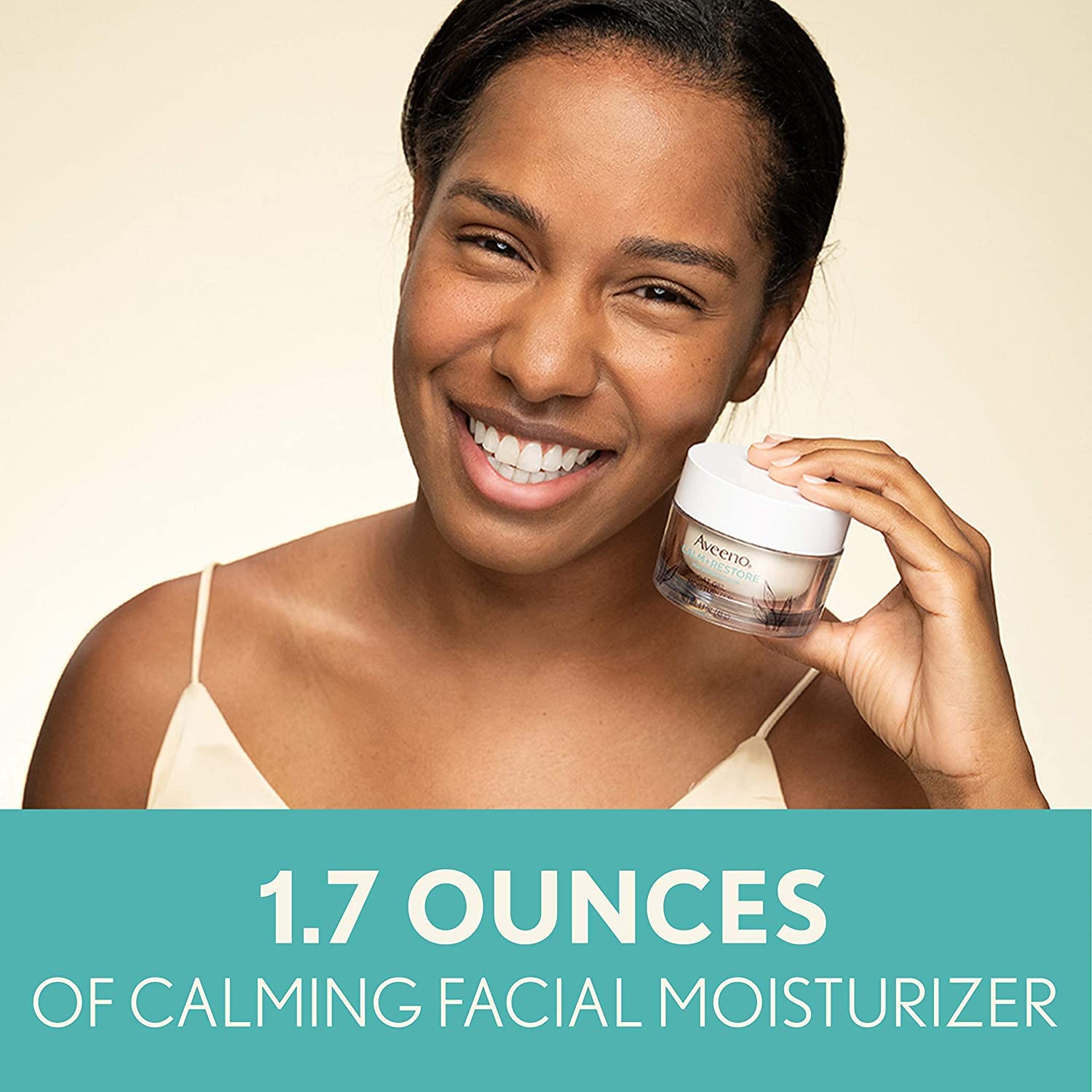 - 1.7-ounce container of Aveeno Calm plus Restore Oat Gel Facial Moisturizer for sensitive and irritated, dry skin to instantly hydrate, soothe and replenish skin's moisture barrier while leaving it resilient