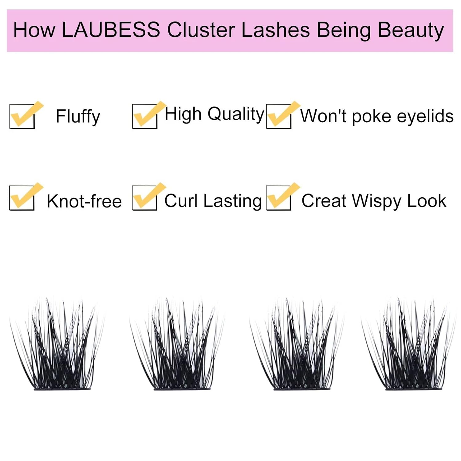 Cluster Lashes 72pcs Individual Lashes D Curl Lash Clusters Fluffy Volume Eyelash Clusters Soft DIY Lash Extension Kit Cluster Eyelash Extensions (03-0.07D, 16mm)