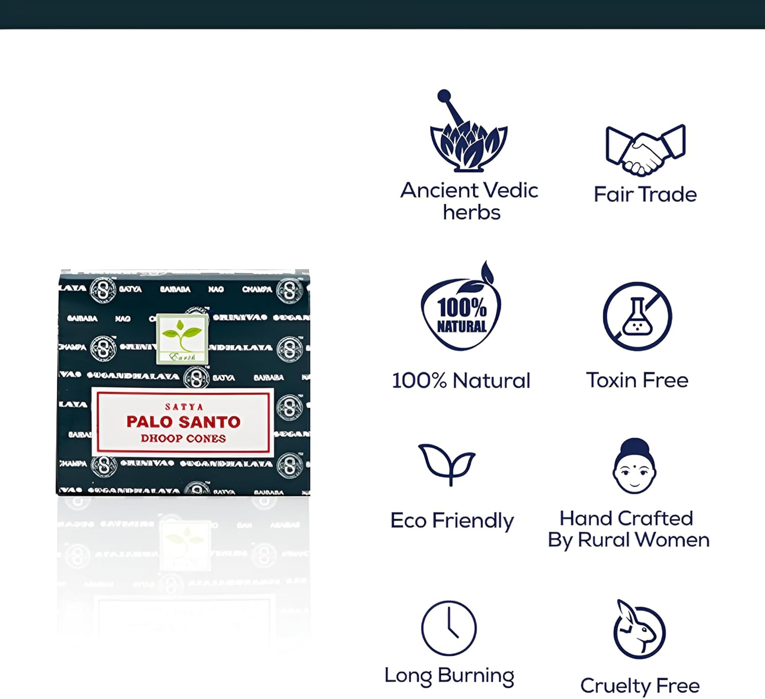 - ✅ 144 Dhoop Cones in 12 Boxes: Each pack contains 12 boxes, each filled with 12 earthy and soothing palo santo-scented dhoop cones, providing you with a total of 144 cones for long-lasting use.