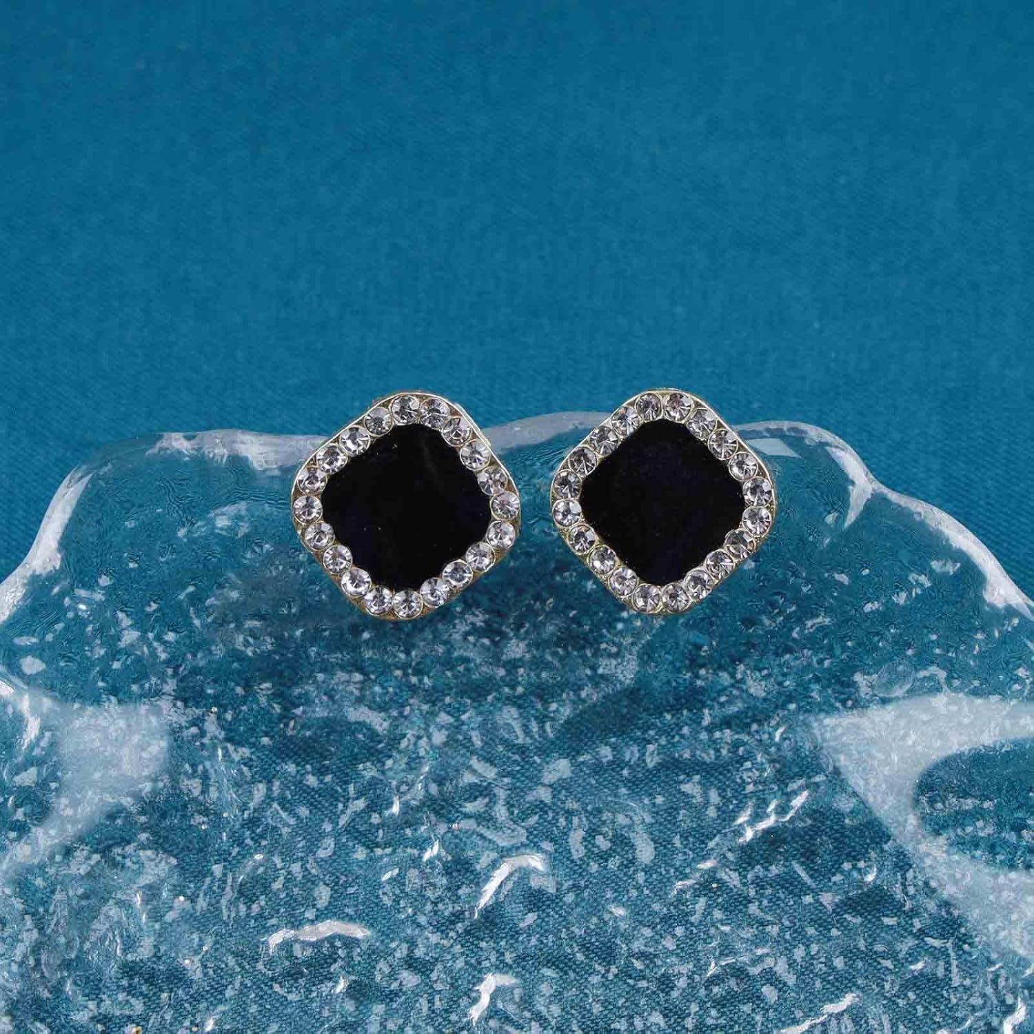 Vintage Black Square Crystal Earrings Black Cz Stud Earrings Rhinestone Diamond Earrings Geometric Onyx Earrings Jewelry for Women and Girls