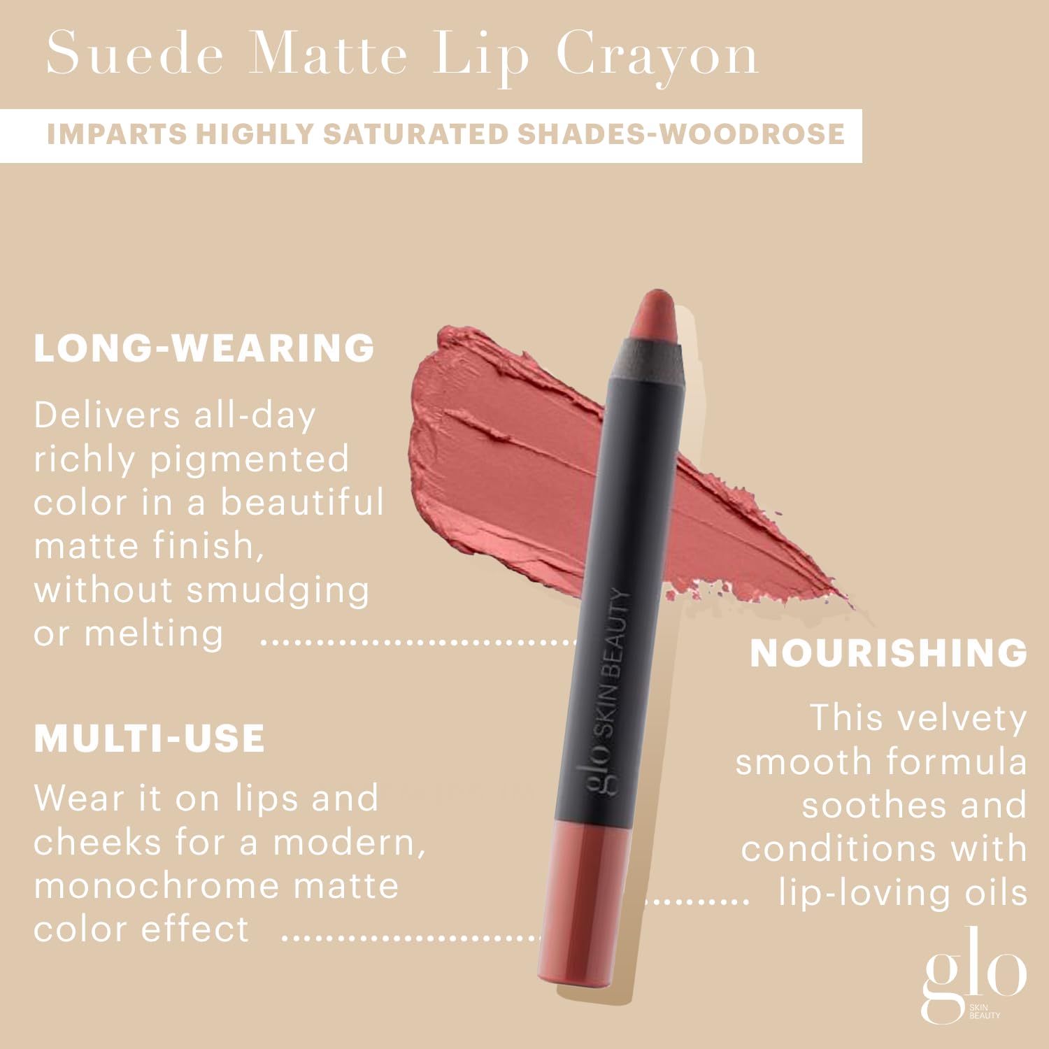 Glo Skin Beauty Suede Matte Lip Crayon (Woodrose) - Longwearing Formula Stays On All Day, With Conditioning Shea Butter + Mango Seed Oil for a Velvety Smooth Finish