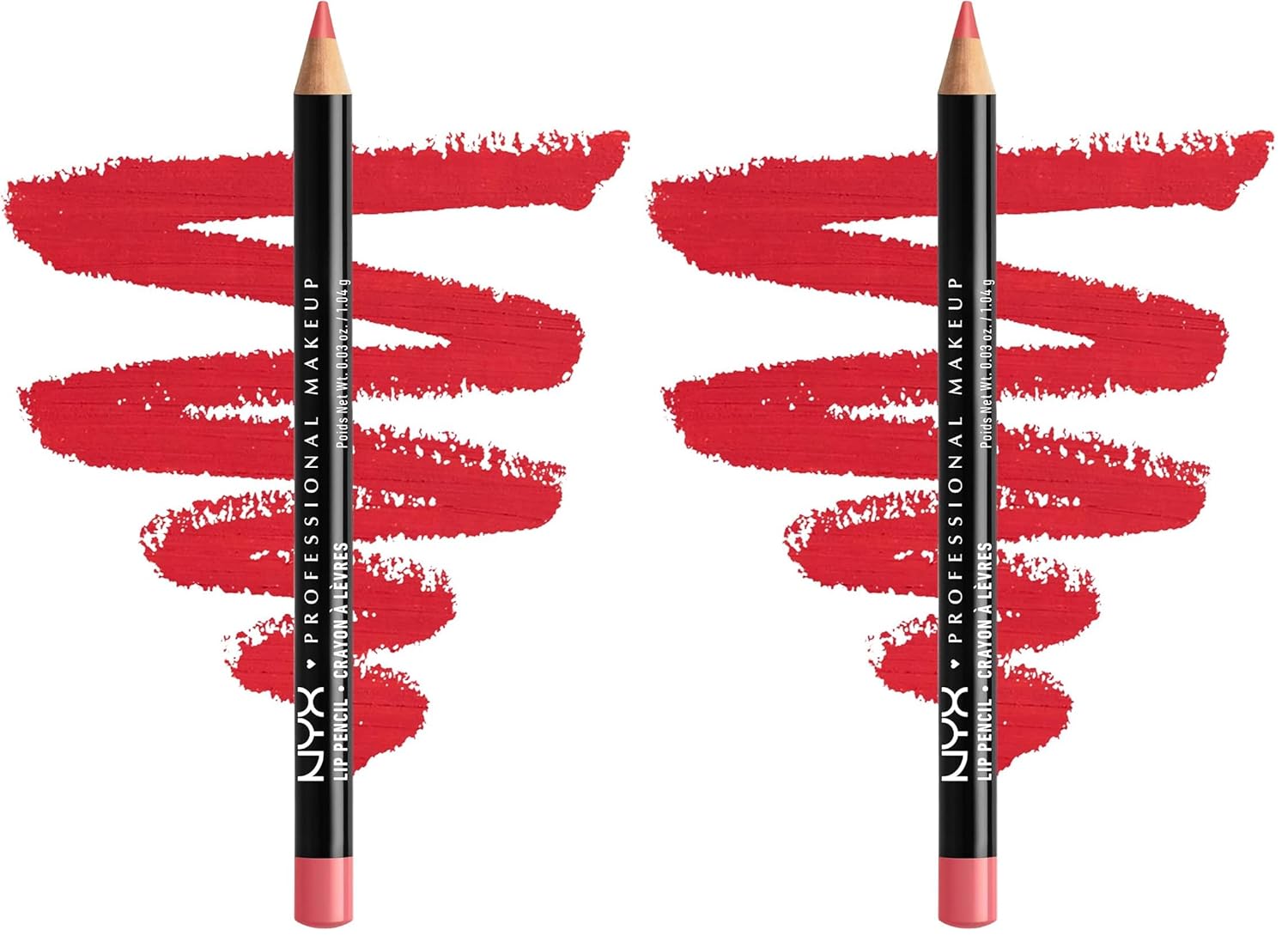 NYX PROFESSIONAL MAKEUP Slim Lip Pencil, Long-Lasting Creamy Lip Liner - Hot Red (Pack of 2)