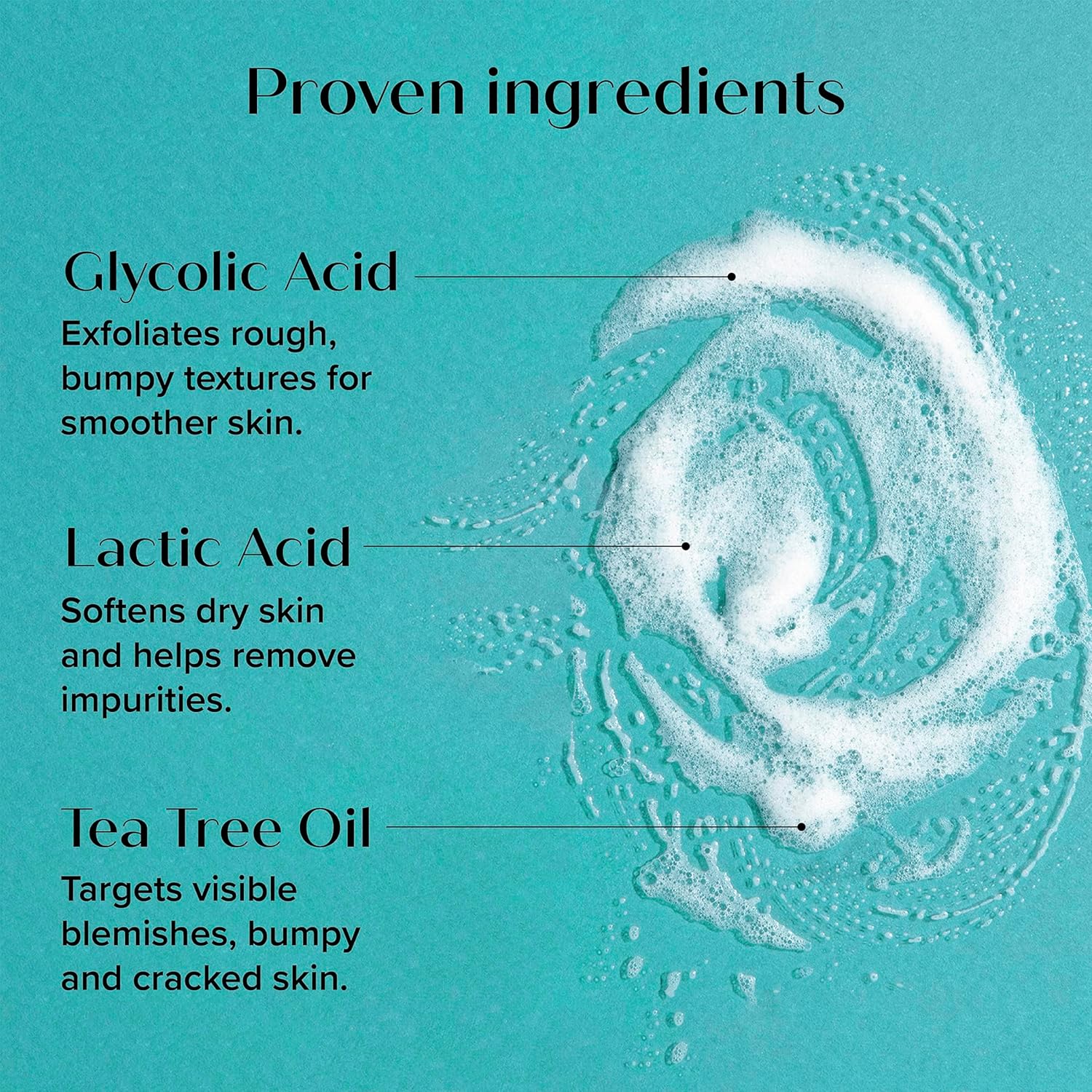 - SMOOTHING CLEANSE: Our glycolic acid body wash exfoliates and resurfaces rough and bumpy texture to reveal softer, smoother skin. The Alpha Hydroxy Acids within this exfoliating body wash prepares your skin for body creams / body lotions to effectively be applied by helping to remove the dry, dull skin that builds up on the surface of our skin. Dry skin can act like a shield that prevents active ingredients from penetrating.