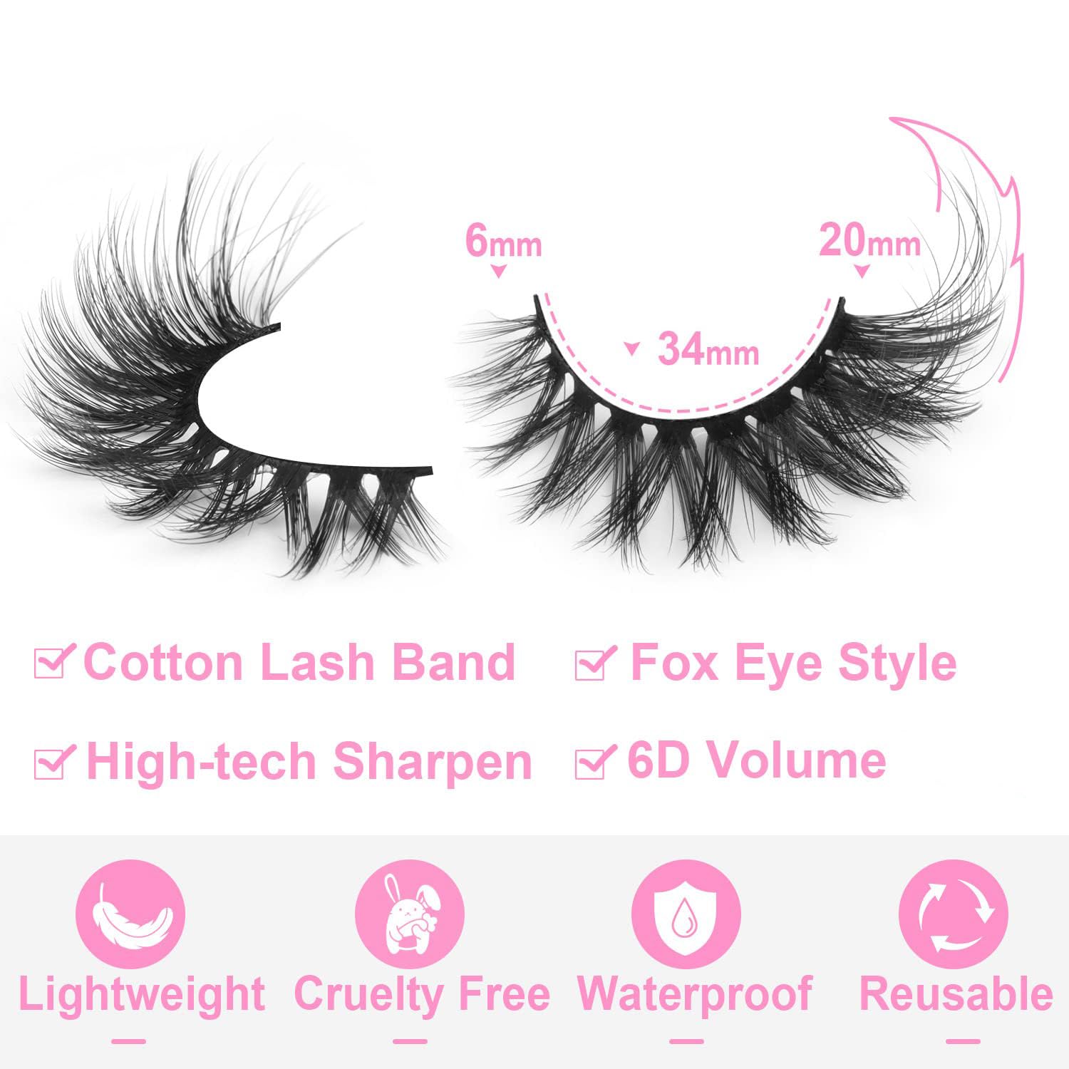 Fox Eye Lashes Faux mink Eyelashes Wispy Cat Eye Long False Eyelahses Dramatic Cross Full Volume Strip Lashes Pack 7 Pairs