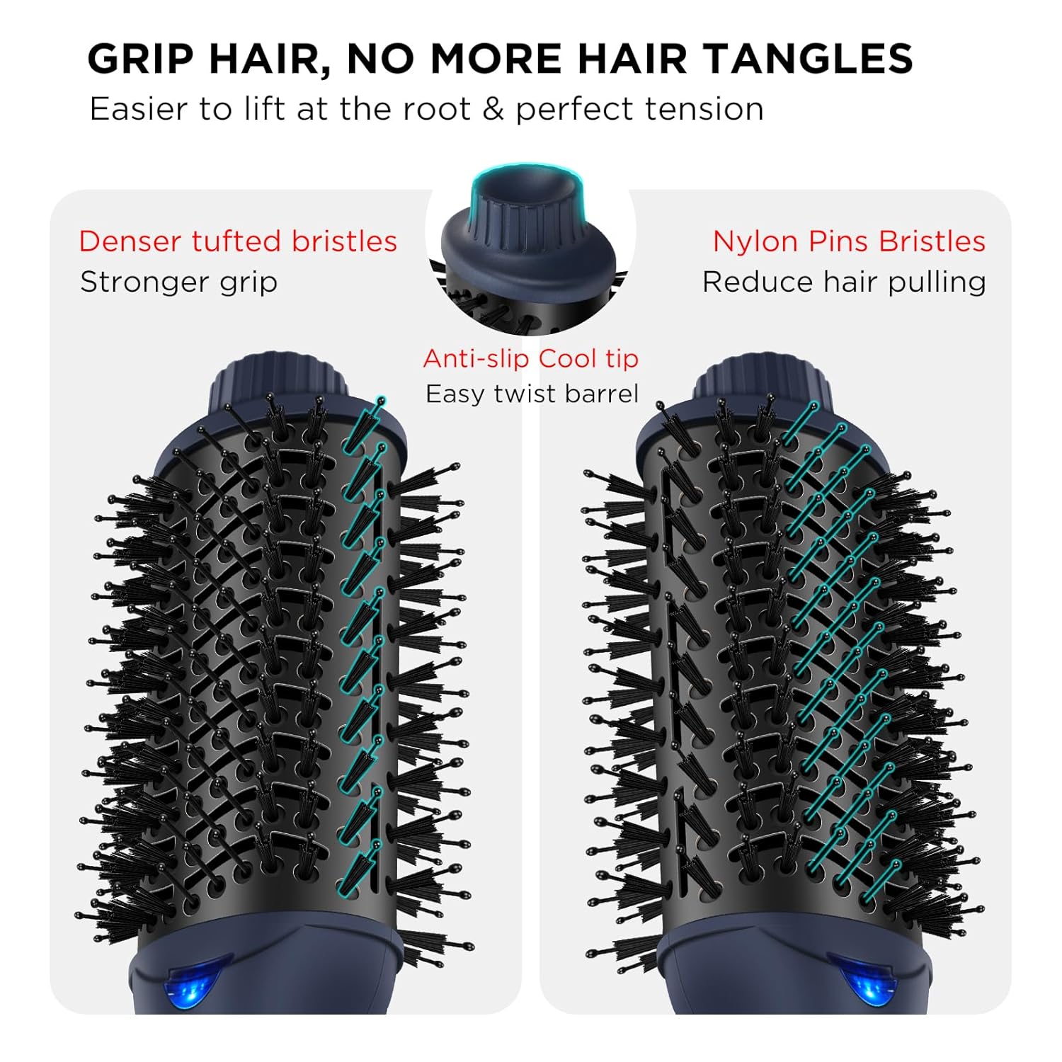 - 【Negative Ionic Technology】: One-step hair dryer brush with 360° release of negative ions design and ceramic coating can saturate the airflow, can increase the moisture of your hair. This helps condition, smooth, and make hair shinier while reducing frizz and static, and preventing the hair from splitting. Perfect for dry and wet hair all hair types.