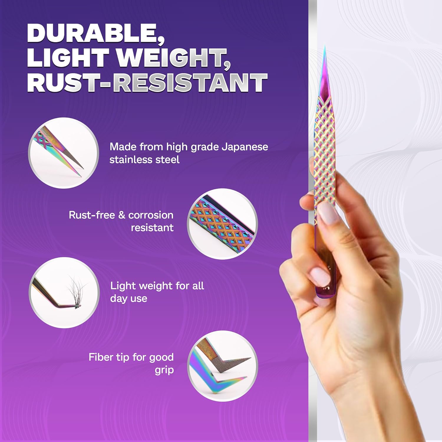 - Premium Japanese steel construction crafted from corrosion-resistant Japanese stainless steel, each eyelash extension tweezer is rustproof, anti-static, and built for long-term use. The durable pairs perfectly with the soft-touch fiber tips for controlled, accurate lash placement