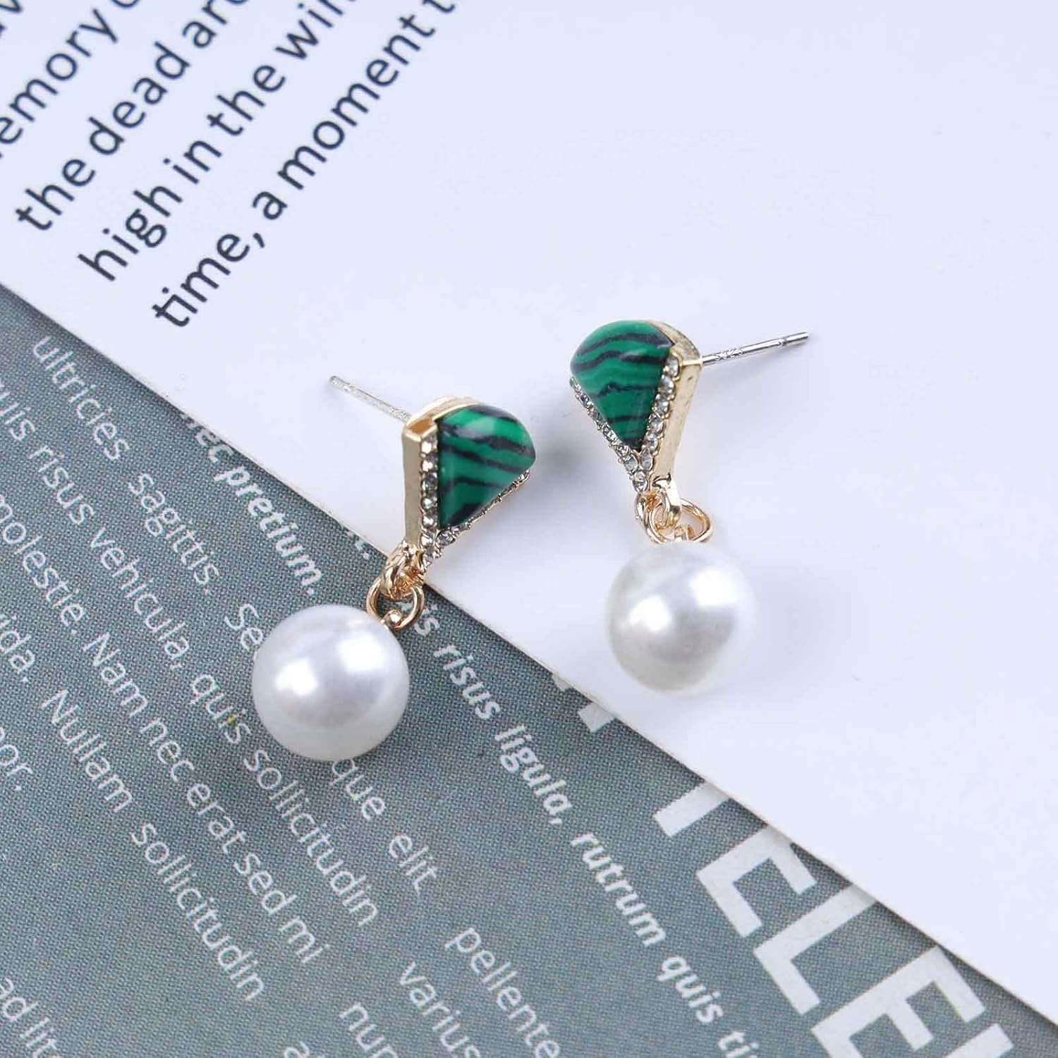Vintage Cz Emerald Pearl Earrings Gold Pearl Drop Earrings Triangle Emerald Earrings Geometric Emerald Stud Earrings Jewelry for Women and Girls
