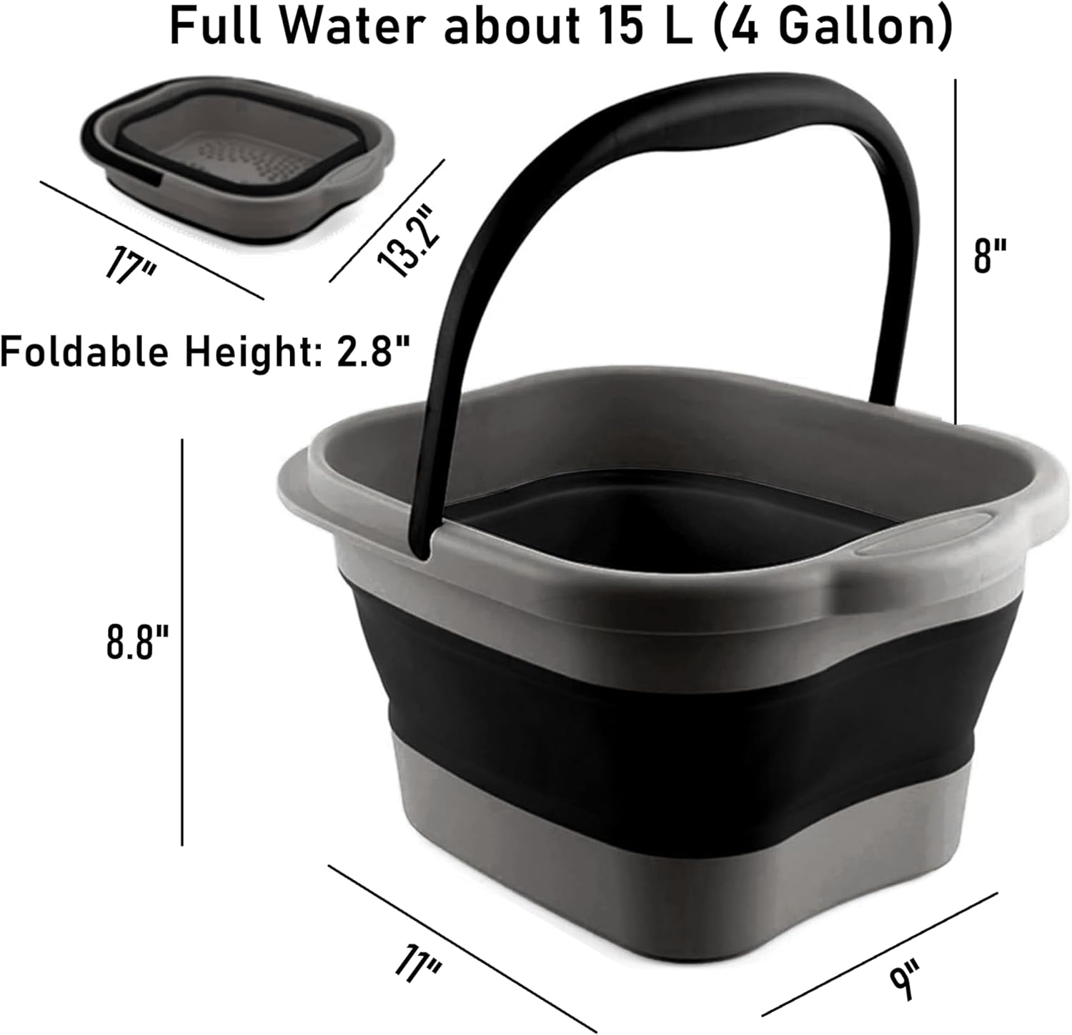 - MULTI-FUNCTION COLLAPSIBLE BUCKET: Large enough to soak your feet, also for household cleaning, car washing, harvest, garden, camping and travel, beach or hiking, etc. Suitable for using as storage container bin, mop bucket, small plastic basket tub, fishing bucket, ice bucket, wash tub, small laundry basket, dog cat pet bathtub. Sturdy handle make it easy to carry water ourdoor or indoor.