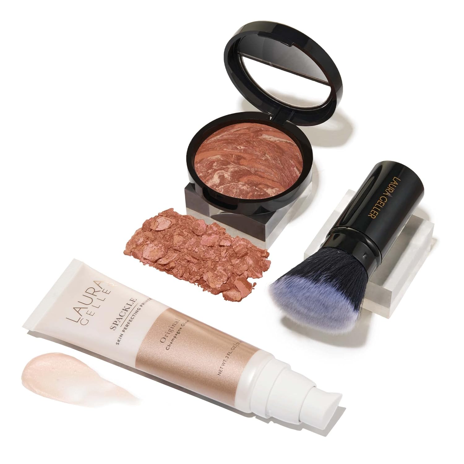 - CHAMPAGNE GLOW BRIGHTENING MAKEUP PRIMER: Laura Geller was the brand that invented makeup primer. Create a smooth canvas for improved foundation application and wear and keep your face feeling fresh all day! Wear it with or without makeup.