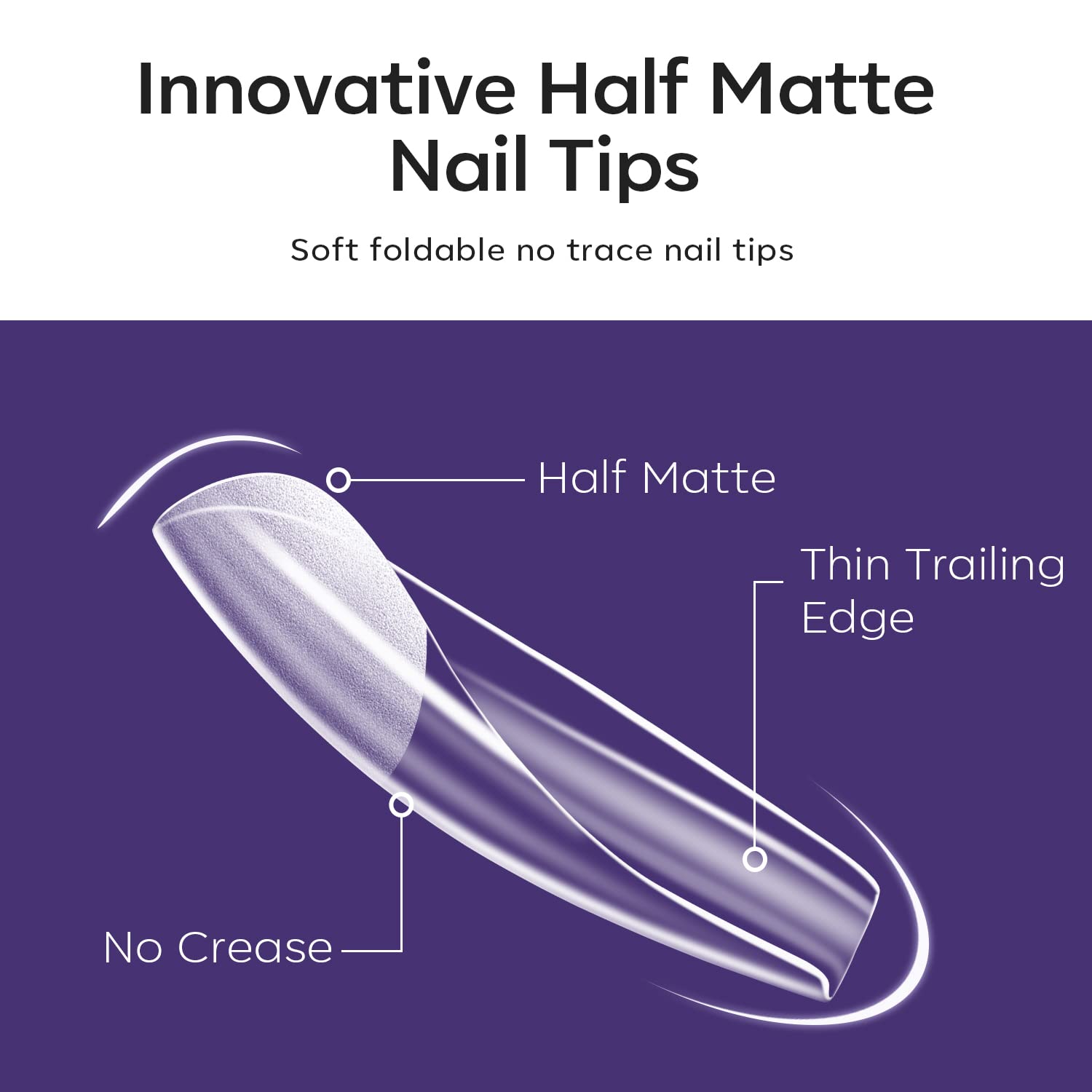 - Premium Quality Nail Tips: Get ready to achieve salon-quality nails from the comfort of your own home with our full cover half matte false nail tips! Made from top-notch materials that are both breathable and lightweight, these tips provide a natural, sophisticated look that's sure to turn heads. And best of all, they contain no toxins, emit no unpleasant odors, and pose no harm to your health or nails. With their pre-shaped design, they're a cinch to apply, too