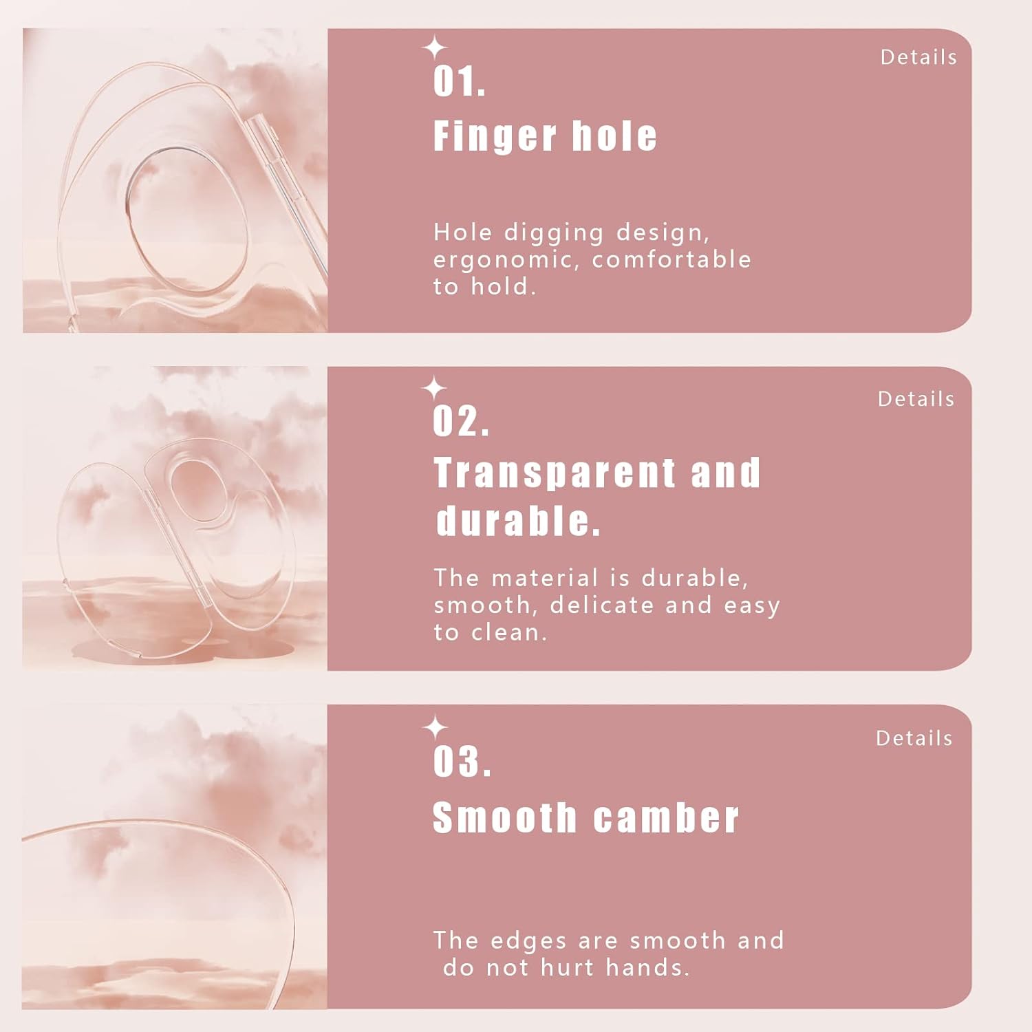 - [Elaborate Design]: The acrylic cosmetics palette is made of high-quality acrylic, comfortable and beautiful, without hurting your hands. The groove area has the function of storing liquid or paste products. It can be placed in the product within half a day or a few days and completely closed with a buckle. [Easy to clean]: It is made of acrylic acid and won't scratch your hands when applying makeup. It is smooth, comfortable, and easy to clean and wipe. Make up at will.