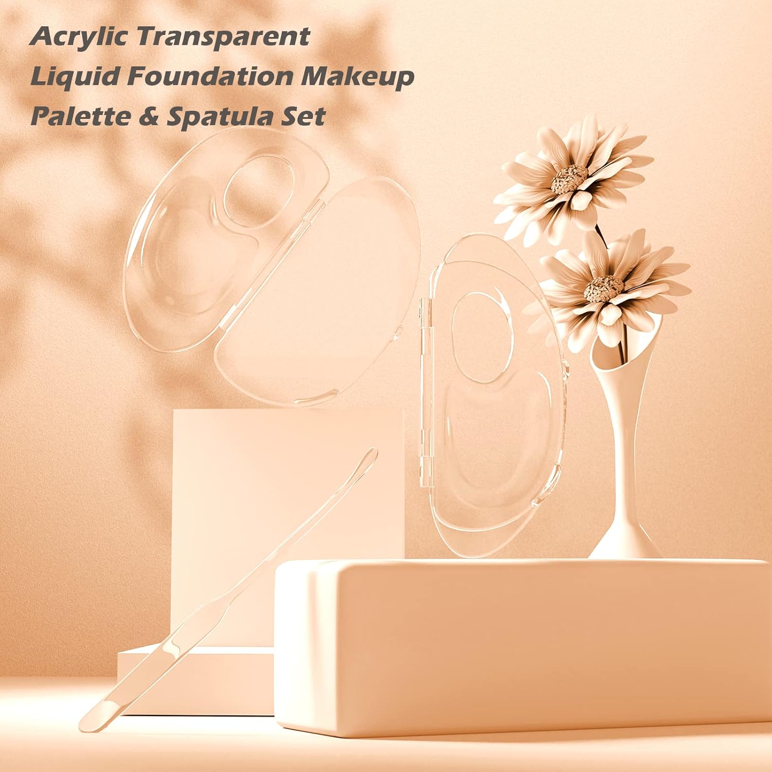 - 💄【Reliable Material】Acrylic makeup mixing tray and transparent foundation spatula are made of acrylic material, the empty makeup palette is comfortable to hold, the edges are delicate and smooth without hurting hands, and the acrylic makeup spatula tool fits the curvature of the eyes, which is more suitable for adjusting makeup. easy to keep clean from blending colors and easy to clean.