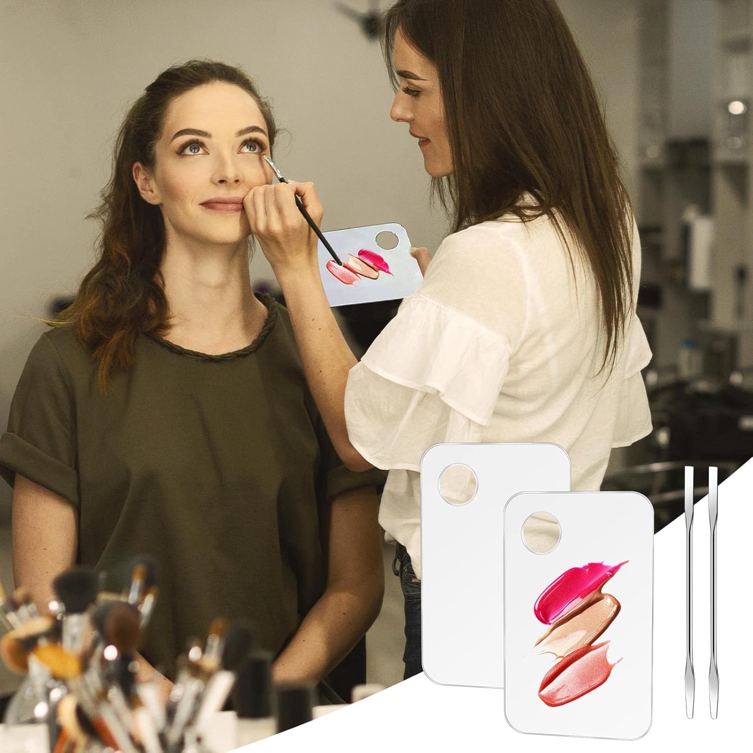 - 【Reliable Material】The makeup mixing tray is made of high-quality acrylic, has a smooth texture, and the color display is clear and beautiful, the makeup spatula is made of stainless steel, double-ended design, is durable, and is easy to clean.