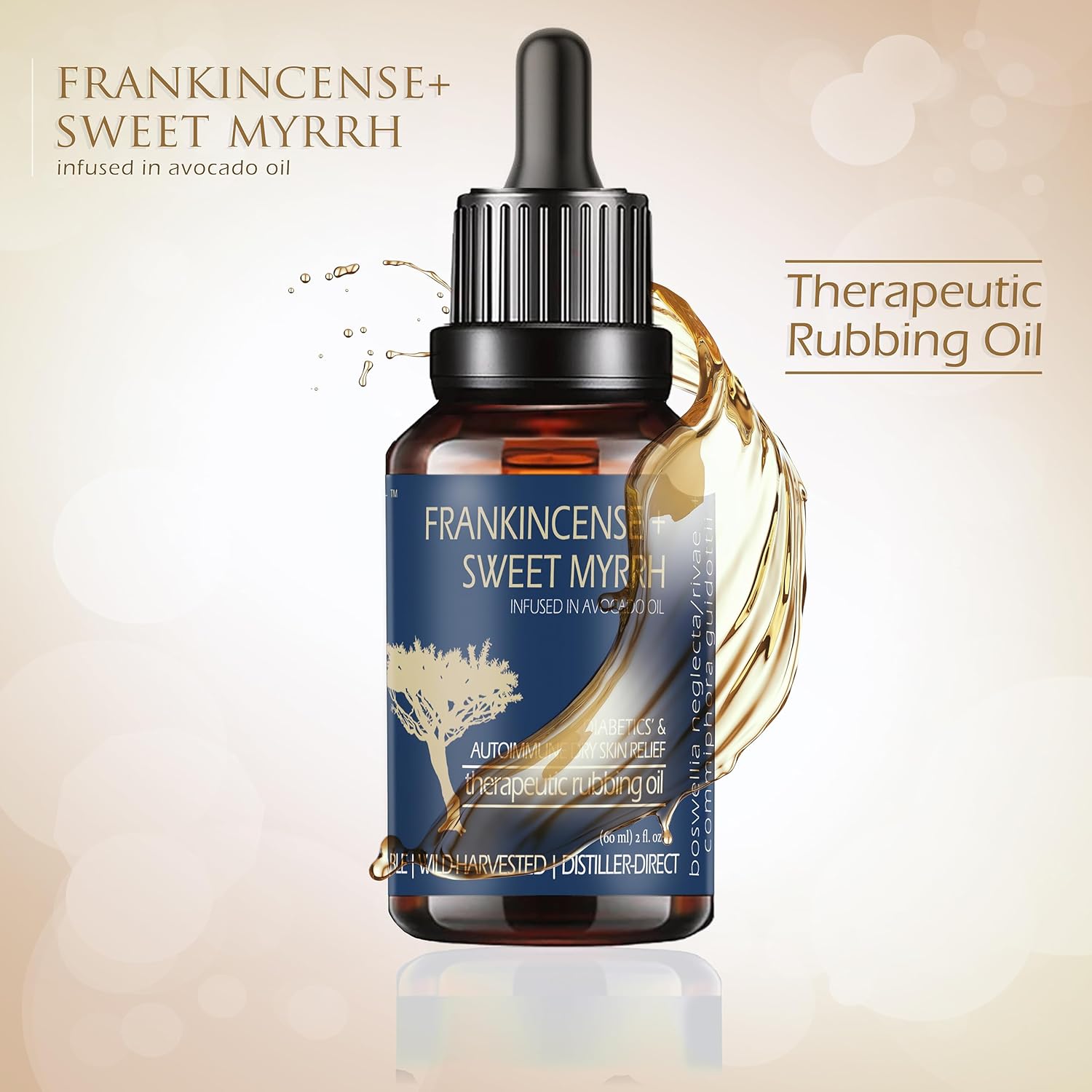 - DISTILLER-DIRECT ESSENTIAL OILS - an unprecedented infusion of RARE BLACK FRANKINCENSE OIL + SWEET MYRRH - most companies infuse traditional frankincense and myrrh, however after extensive research on a multiple combinations of boswellia and commiphora species, aromatically and therapeutically, our combination stands alone - you won't be disappointed!