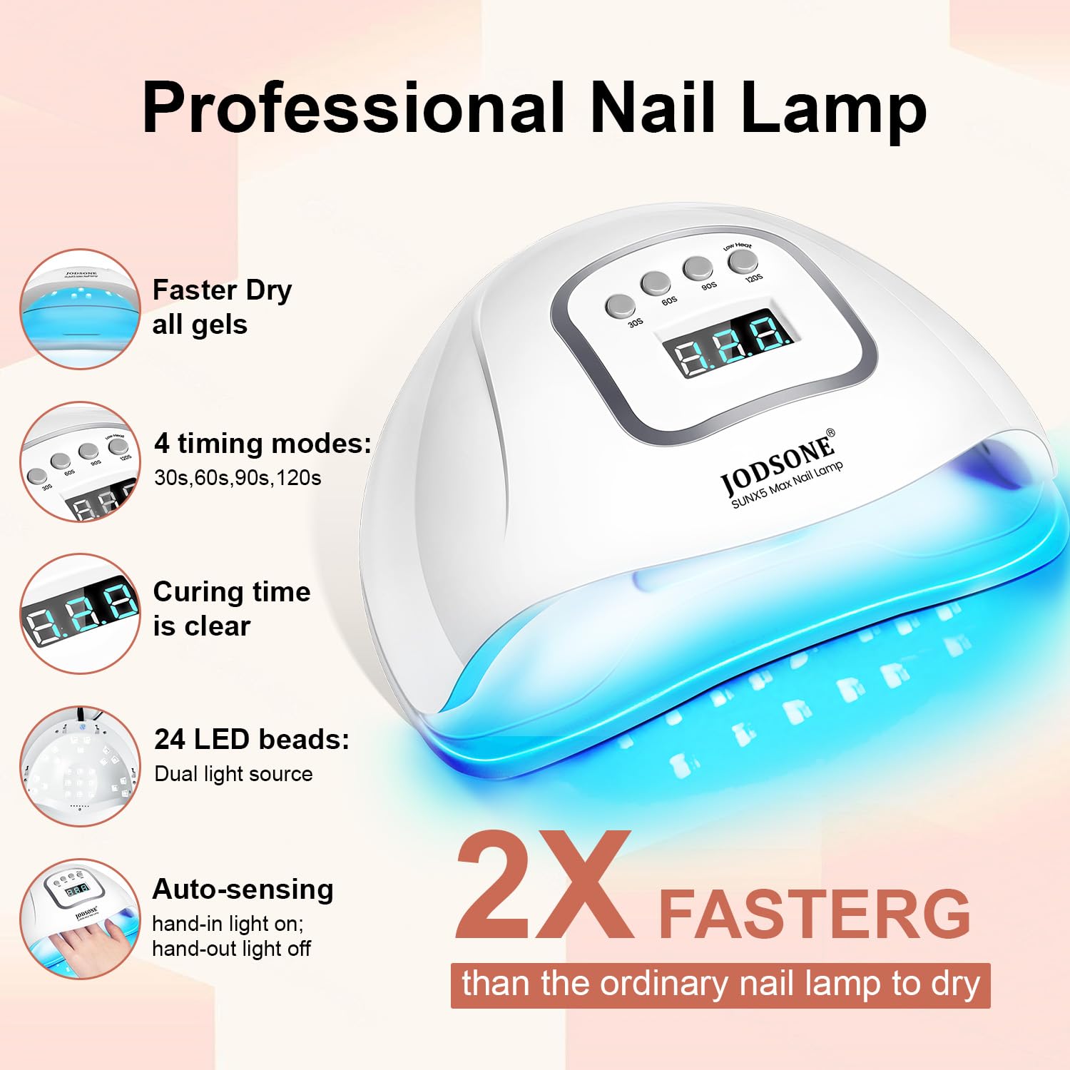 - Nail Lamp:It can efficiently cure all kinds of gel nail polish with LCD screen and auto sensor (hand in and the lights will be on automatically). It can fast curing than some others uv nail lamp, save your time!