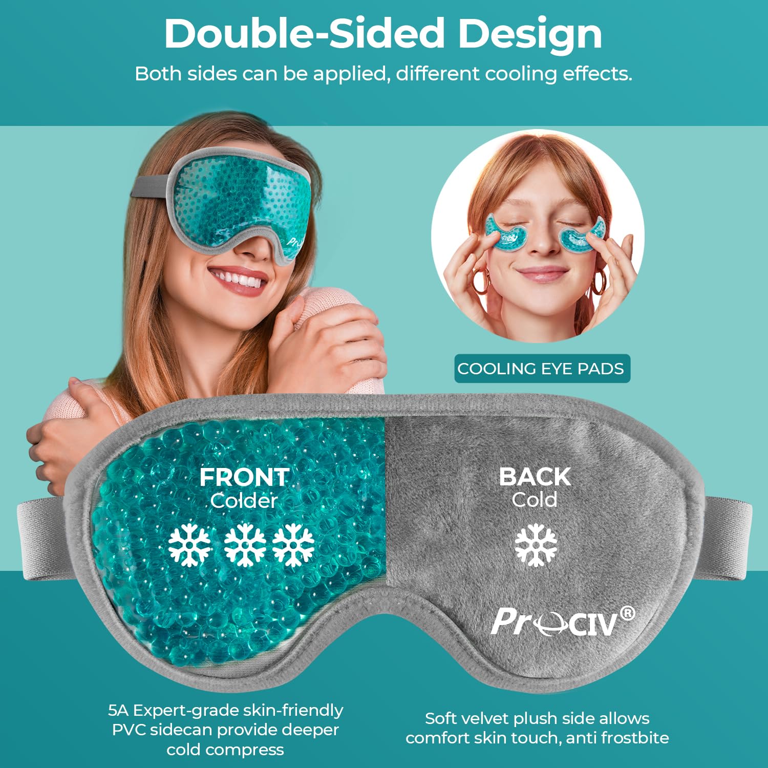 Cooling Eye Mask Ice Face Mask - Gel Beads Hot Cold Compress Reusable Ice Face Eye Mask, Under Eye Patches & Ice Pack Set, Cold Eye Mask for Sleeping Dark Circles Puffiness Dry Eye Headache (Blue)