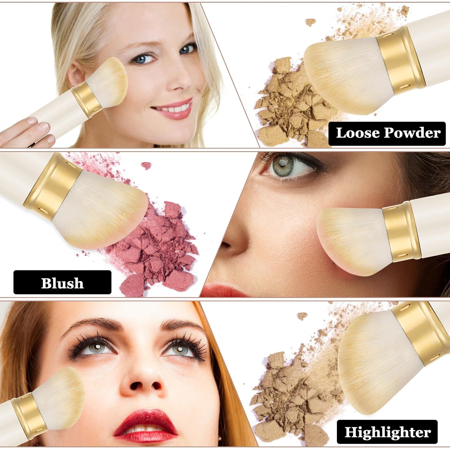 - 【Stylish & Easy to Clean】 The travel powder blush brush comes with recycled aluminum, excellent and more beautiful, increase the longevity of your face brush. Clean regularly with makeup brushes shampoo to lengthen brush health and prevent excessive shedding.
