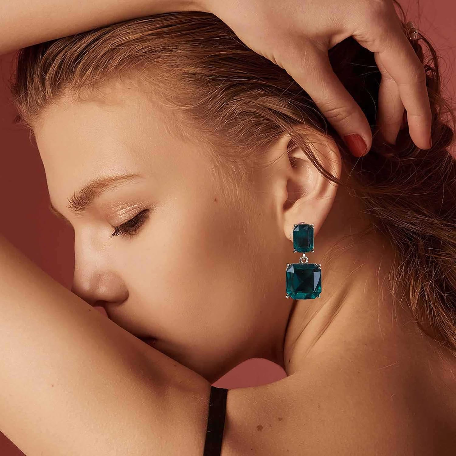 - Green square drop stud earrings.If you have any questions, please feel free to contact us if any issues, we will reply and provide relevant services within 24 hours.