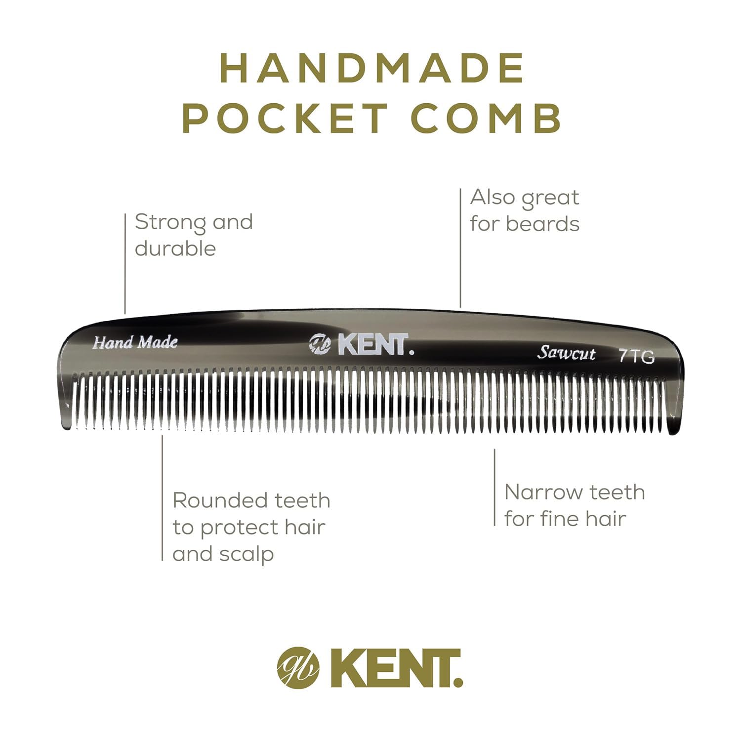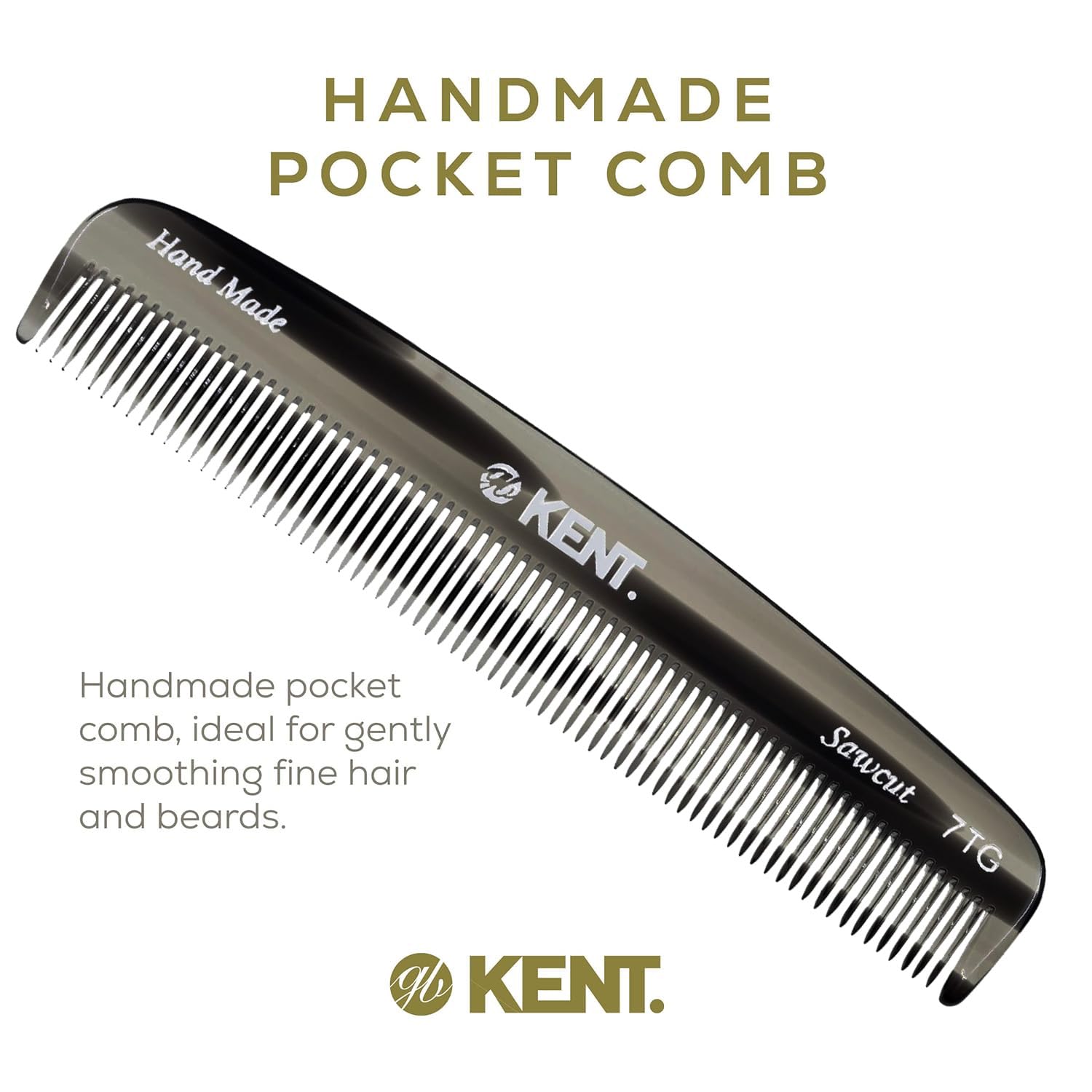 Kent 7T G All Fine Tooth Pocket Comb - Handmade Grooming Comb for Styling, Travel, Mustache and Beard Care - Saw Cut and Hand Polished