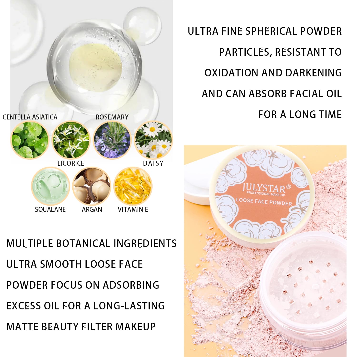 - 【Strong Oil Control】With high-quality and safe formula, the ultra loose face powder can adsorb excess oil, making the base makeup more refined and the outline more three-dimensional. Fast makeup setting, soft focus in one second without greasy.