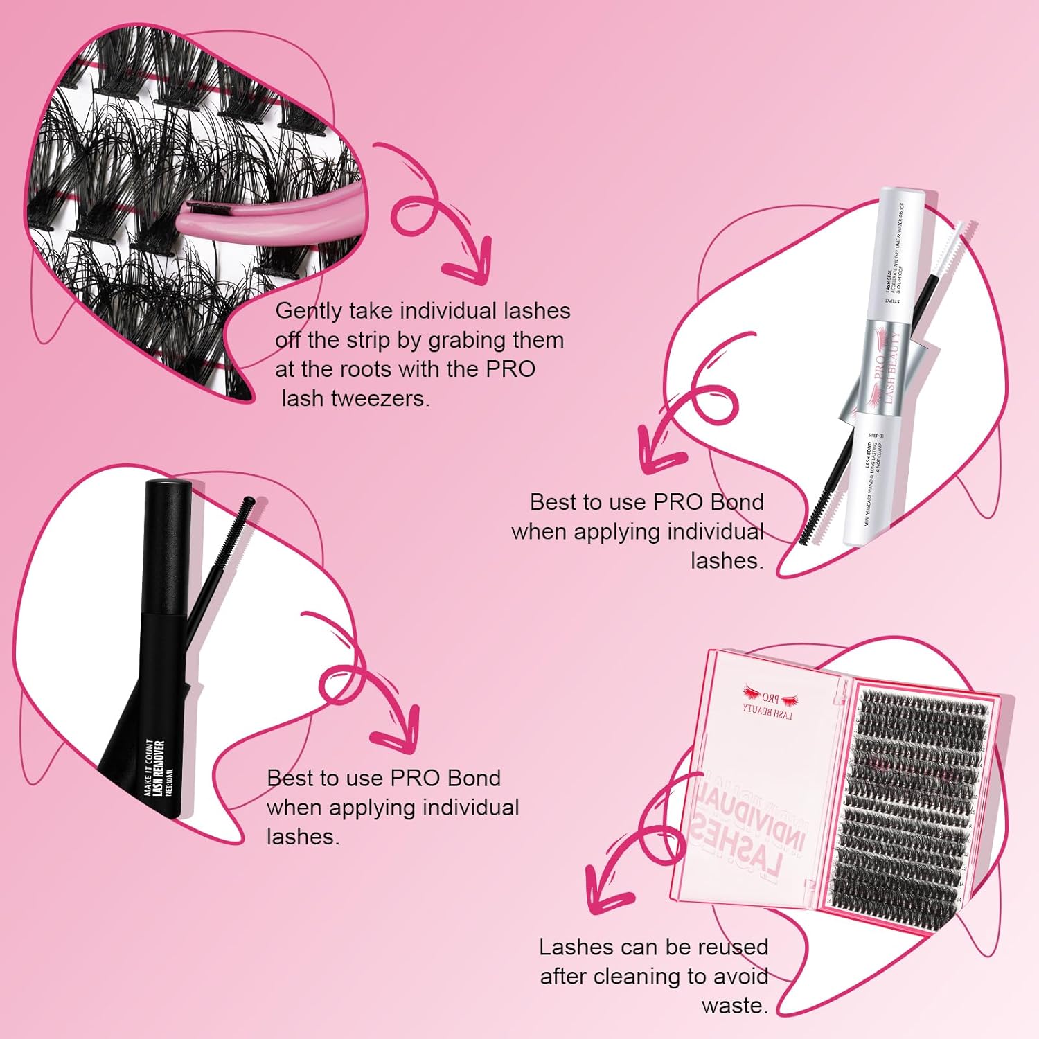 - PRO 3D Fluffy Cluster Lashes: PRO individual lashes have a 3D effect, fluffy and a sense of layering, 3D lashes are even more realistic and close to our own lashes. It makes your eye makeup more outstanding.