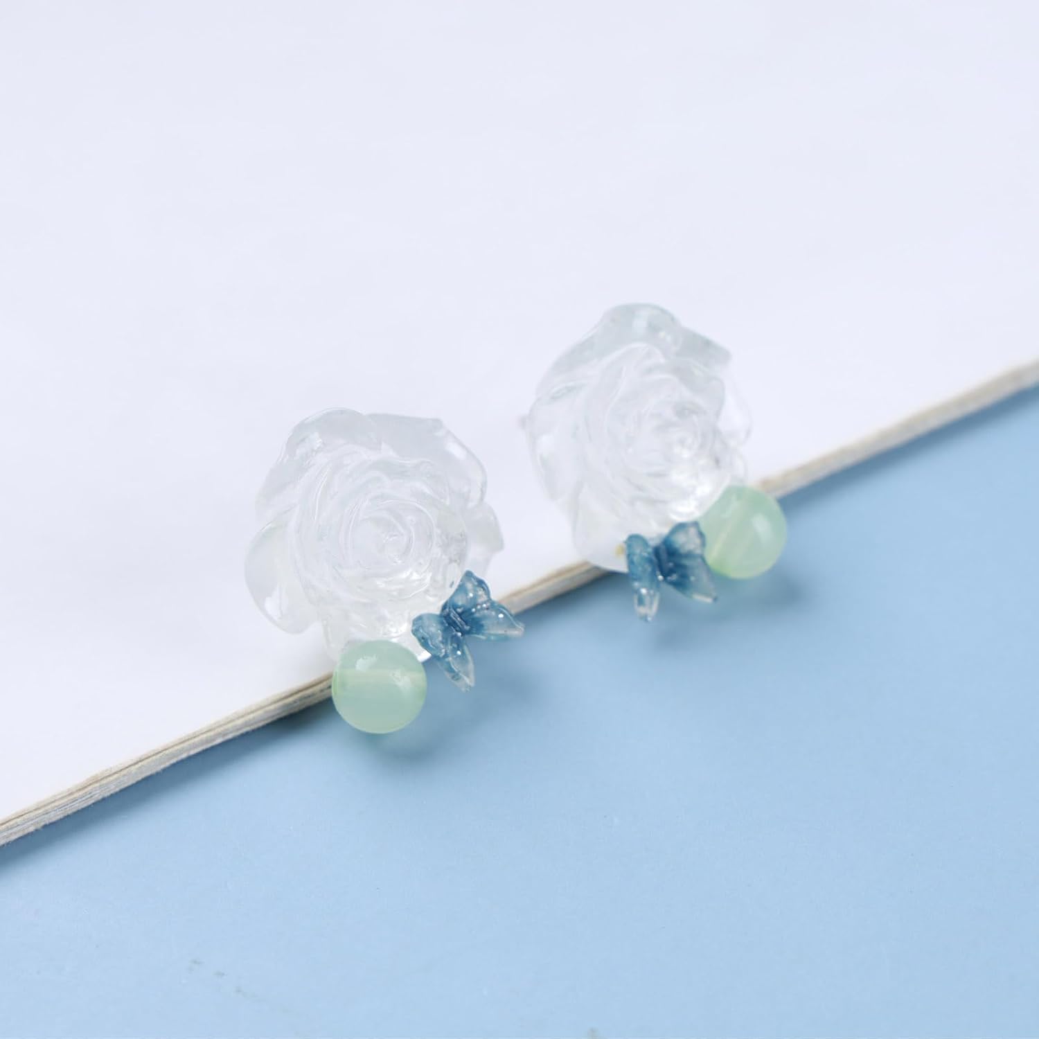 Vintage Resin Flower Earrings Camellia Flower Stud Earrings Large Transparent Flower Earrings Boho Transparent Petal Earrings Jewelry for Women