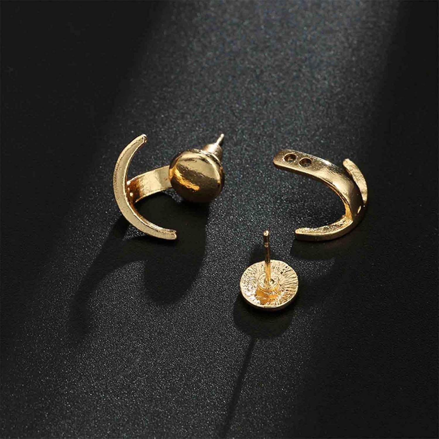 Boho Moon Ear Jackets Earrings Crescent Moon Stud Earrings Gold Sun Moon Earrings Minimalist Double Sided Round Earrings Jewelry for Women