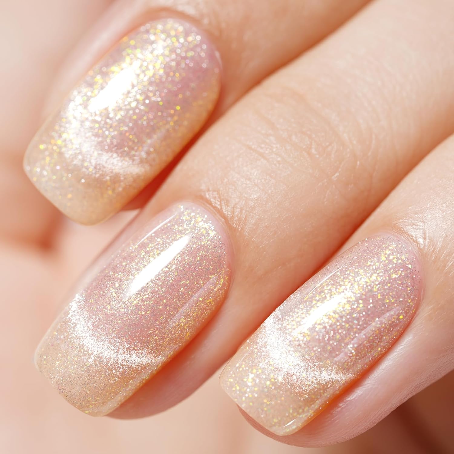 - CAT EYE STYLE - This cat eye gel nail polish is enriched with colorful gold glitter, which can be applied in 1 thin coat to create a shimmer layer of glitter that can be used either as a cat's eye effect or with other color gels.