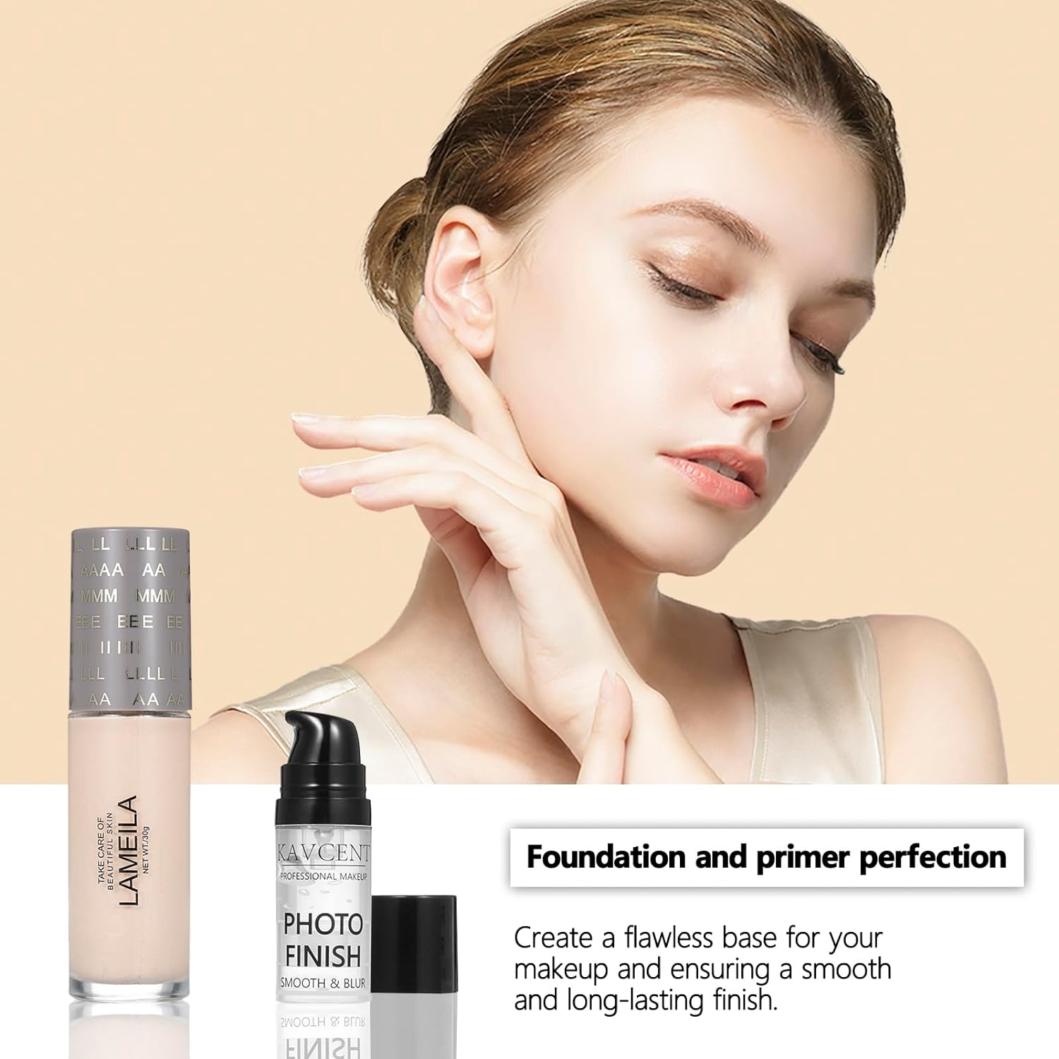- 【All In One Makeup Kits】A perfect makeup sets that includes Foundation,Face Primer,20 Color eyeshadow palette, lipstick palette, lipgloss, lipstick ,concealer cream, makeup brush, concealer palette, Contour Stick,eyeliner, lip balm, mascara,powder puff, Cosmetic bag
