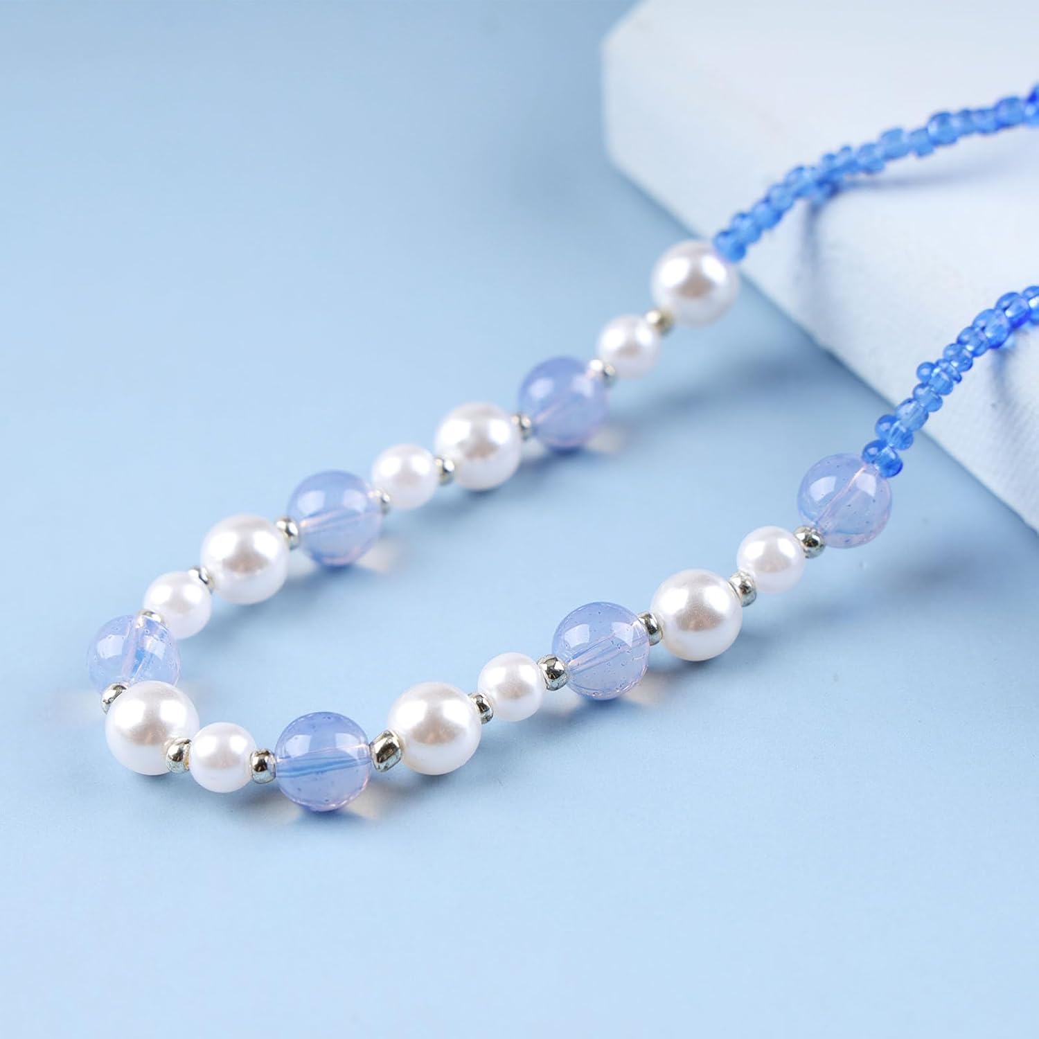 - 【Unique Design】This is a beautiful pearl choker necklace with a delicate blue bead pendant necklace, very popular.