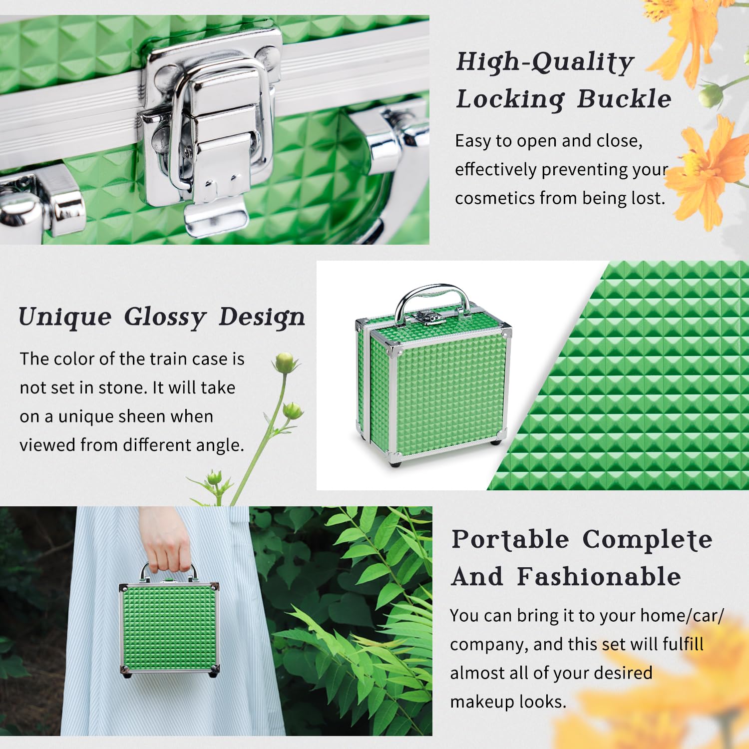 Color Nymph Beginner Makeup Kit For Teens With The Small Cosmetic Train Case Included 24-Colors Eyeshadow Palette Blushes Bronzer Highlighter Lipstick Brushes Mirror(Green)