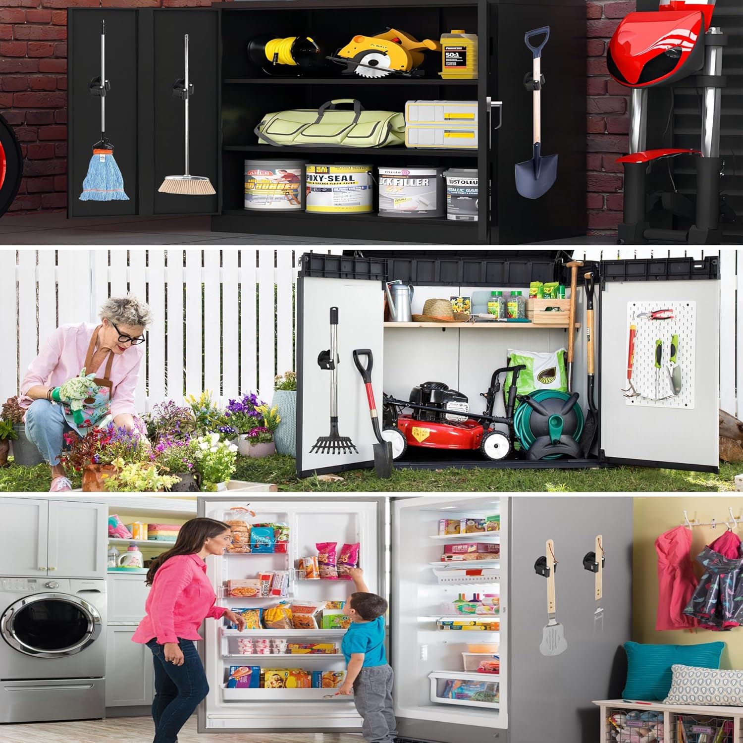 - [Pakage List]: 2 pcs Magnetic Mop Broom Holder. This hook is the perfect solution to reduce clutter, increase space, keep items in order, and quickly find what you need