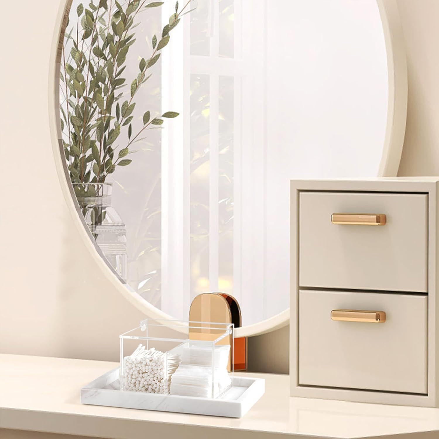 - Compact Size: Size(LxWxH)-5.9'' x 4.53" x 3.94" inches. You can also use the bathroom organizer container for organizing small items, such as beauty egg, face brush, candy, pens, clip, cotton balls, cotton swabs, cotton pads, hair ties, floss picks, bath salt and more
