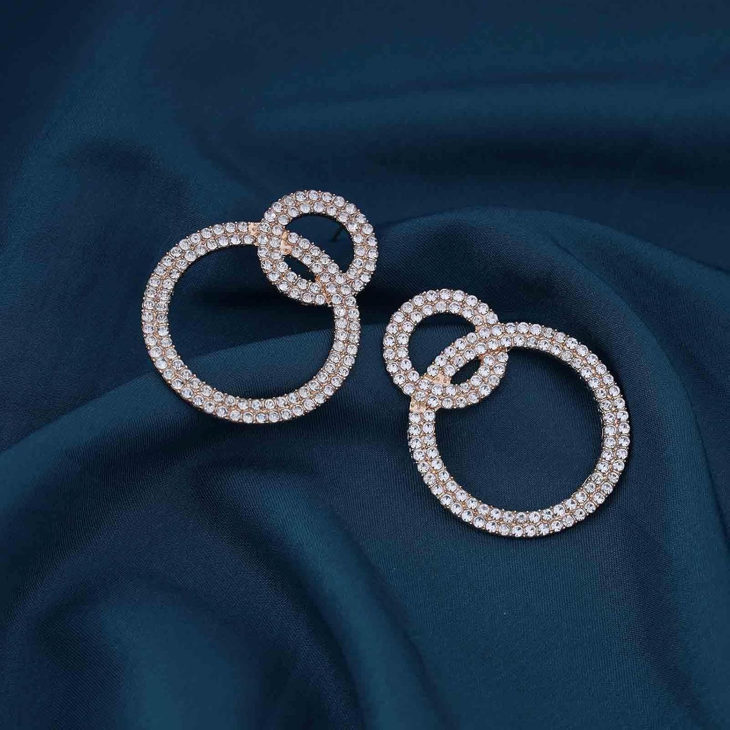 Vintage Crystal Circle Drop Earrings Double Circle Hoop Earrings Gold Cz Circle Dangle Earrings CZ Hollow Circle Earrings Jewelry for Women