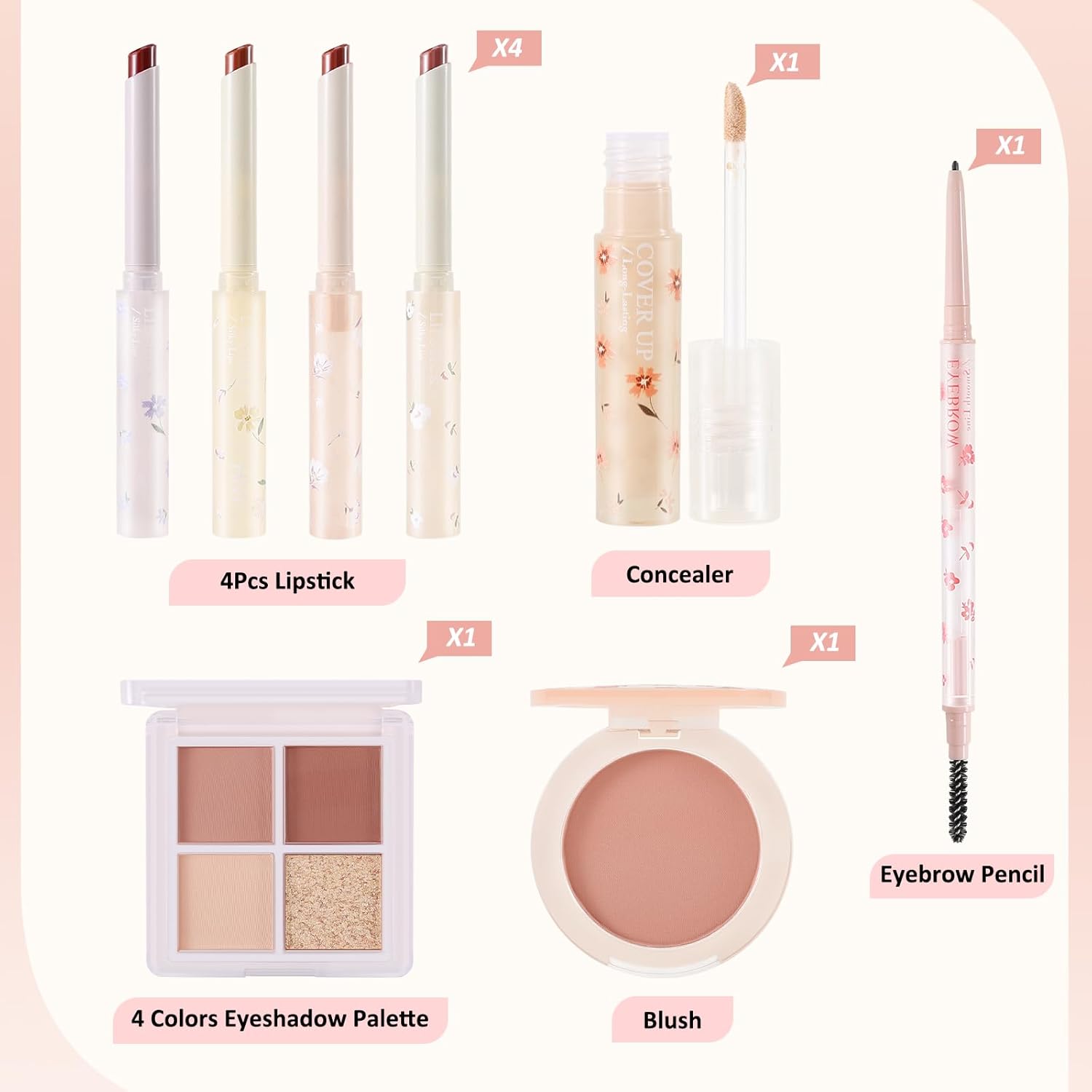 - 【All in One Makeup Kit】:The beginner makeup set including 4 colors Eyeshadow Palette, 4Pcs Lipstick,Eyebrow pencil,Blush,Concealer.The face make up set is perfect for achieving a full-face flawless look.