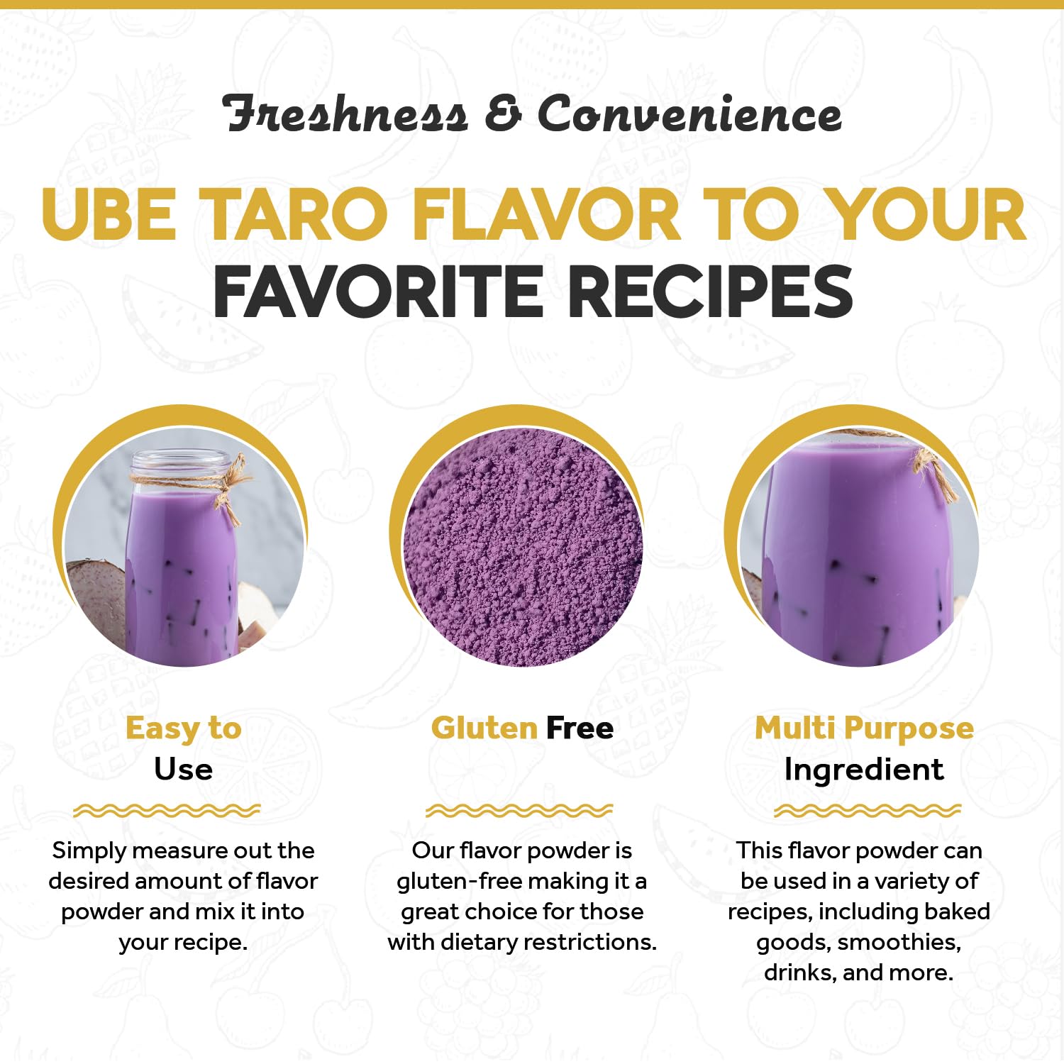 - 𝐄𝐚𝐬𝐲 𝐭𝐨 𝐮𝐬𝐞: Simply measure out the desired amount of Ube Taro flavor powder and mix it into your recipe. No need to chop, grind, or blend Ube Taro, as this powder provides all the nutty flavor you need in a convenient form.