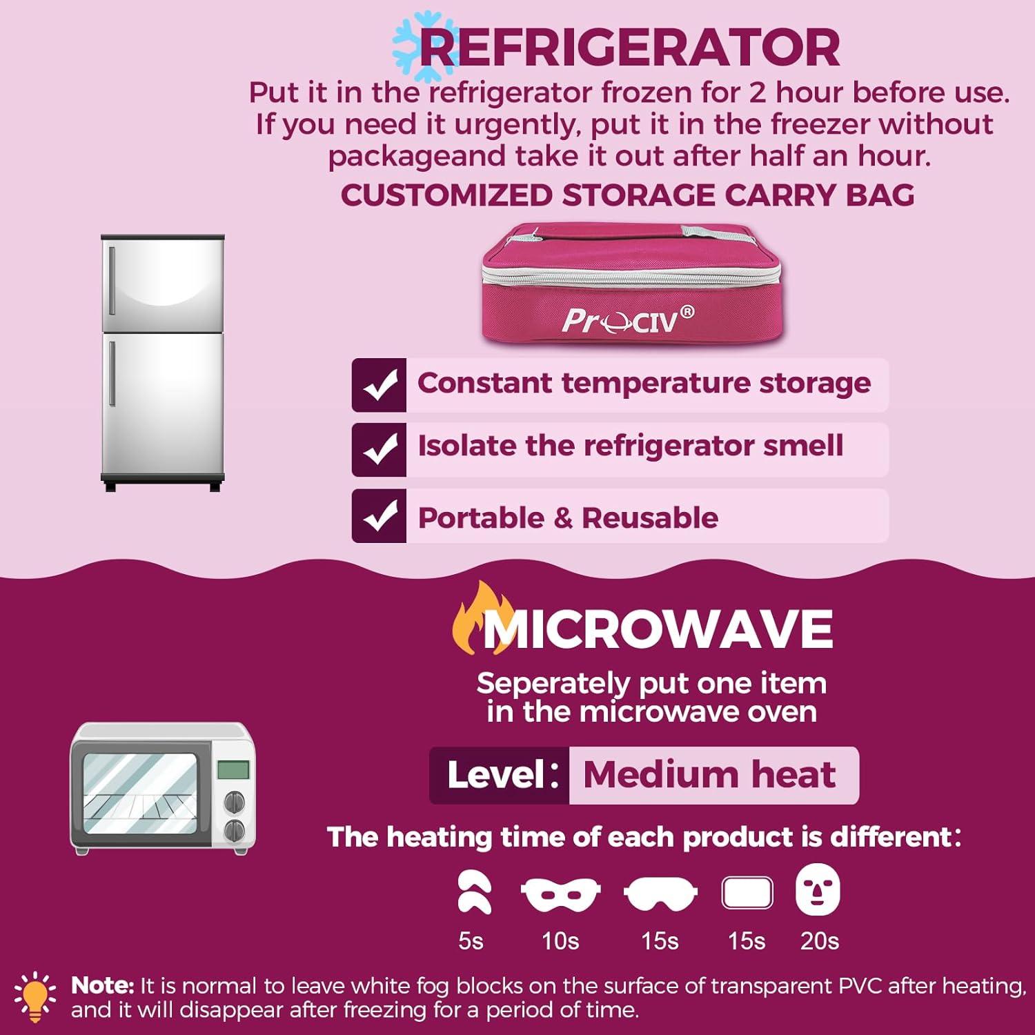 - ❄🔥❄【Hot and Cold Compress】ProCIV gel eye mask set can be chilled in the refrigerator for use as an ice pack, or heated in the microwave as a heated eye mask. Has good temperature storage effect, 𝐊𝐞𝐞𝐩 𝐈𝐜𝐞/𝐖𝐚𝐫𝐦 for up to 𝟐𝟓-𝟑𝟎 𝐌𝐢𝐧𝐬. Effectively amazing for tired eyes relief, fatigue, dark circles, puffiness and the wrinkles. Note: Put it in the 𝐅𝐫𝐞𝐞𝐳𝐞𝐫 frozen for 𝐍𝐨 𝐌𝐨𝐫𝐞 𝐓𝐡𝐚𝐧 𝐇𝐚𝐥𝐟 𝐀𝐧 𝐇𝐨𝐮𝐫. If the time is too long, it will become frozen and hardened.